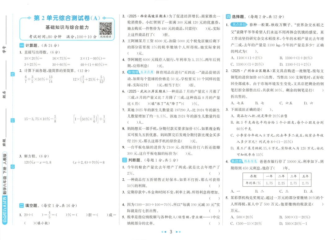 2026春统编版六下语文《小学提优大试卷》电子版,含答案(可下载打印)