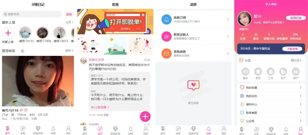 开源推荐:基于uni-app + Vue 相亲脱单小程序