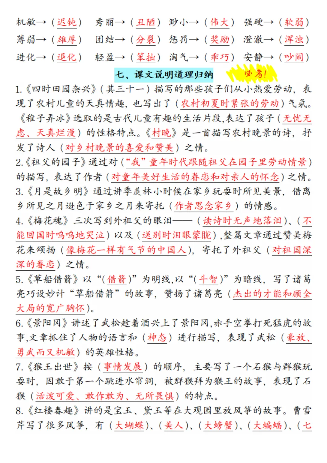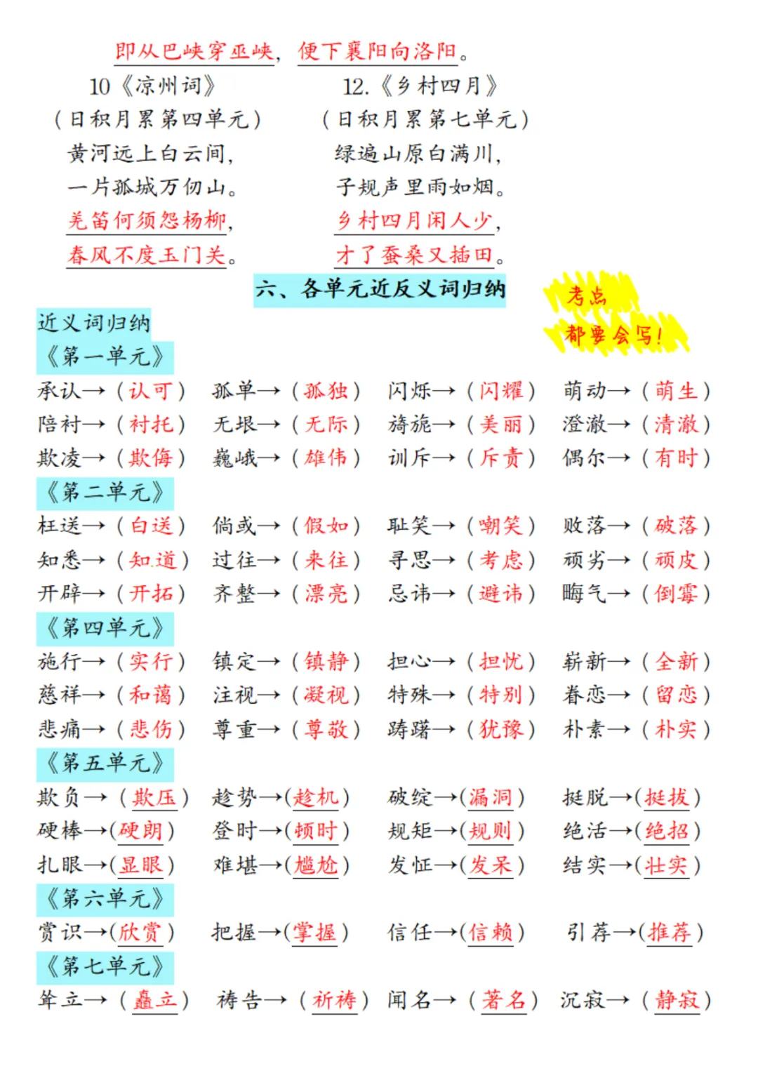 26年五年级语文下册【全册知识点汇总】,电子版可打印