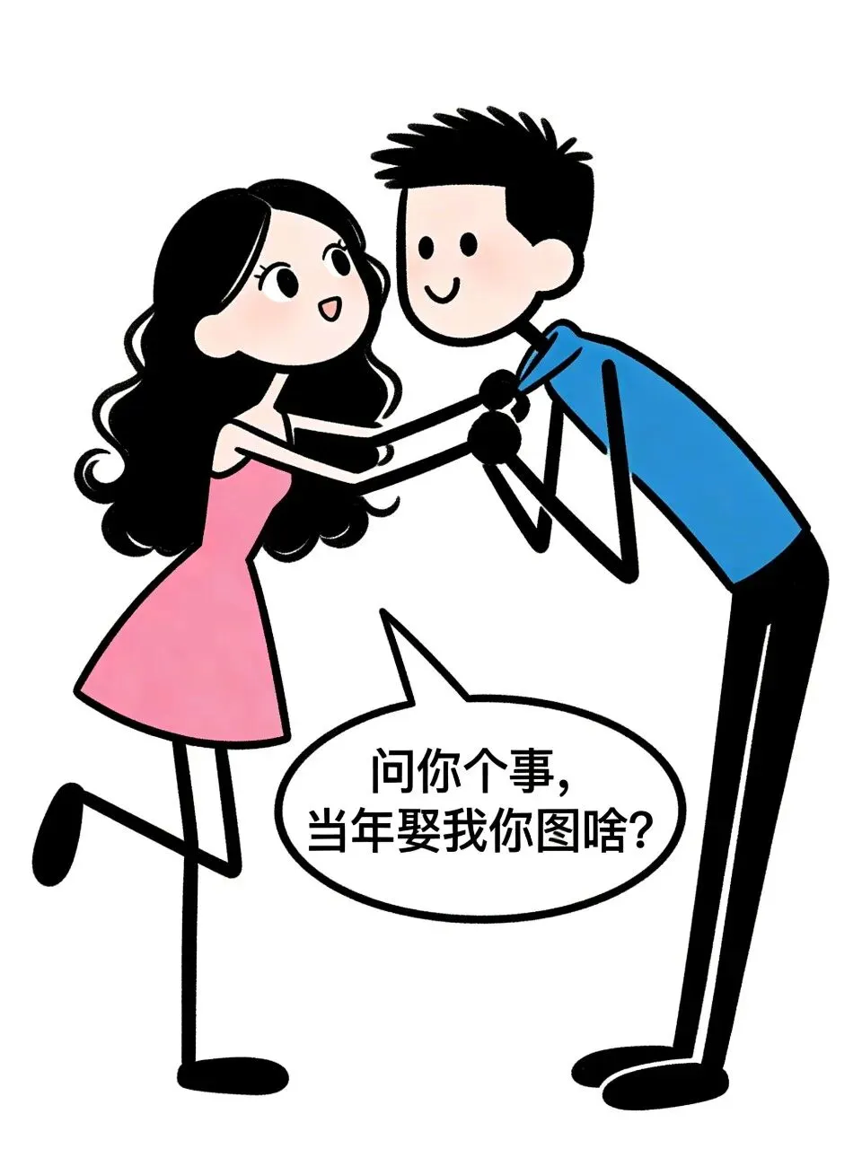 搞笑漫画:老婆:问你个事,当年娶我你图啥?老公:图你便宜呗!老婆:你说的什么话?我爸那是可怜你!彩礼都没多要!老公:不是不是