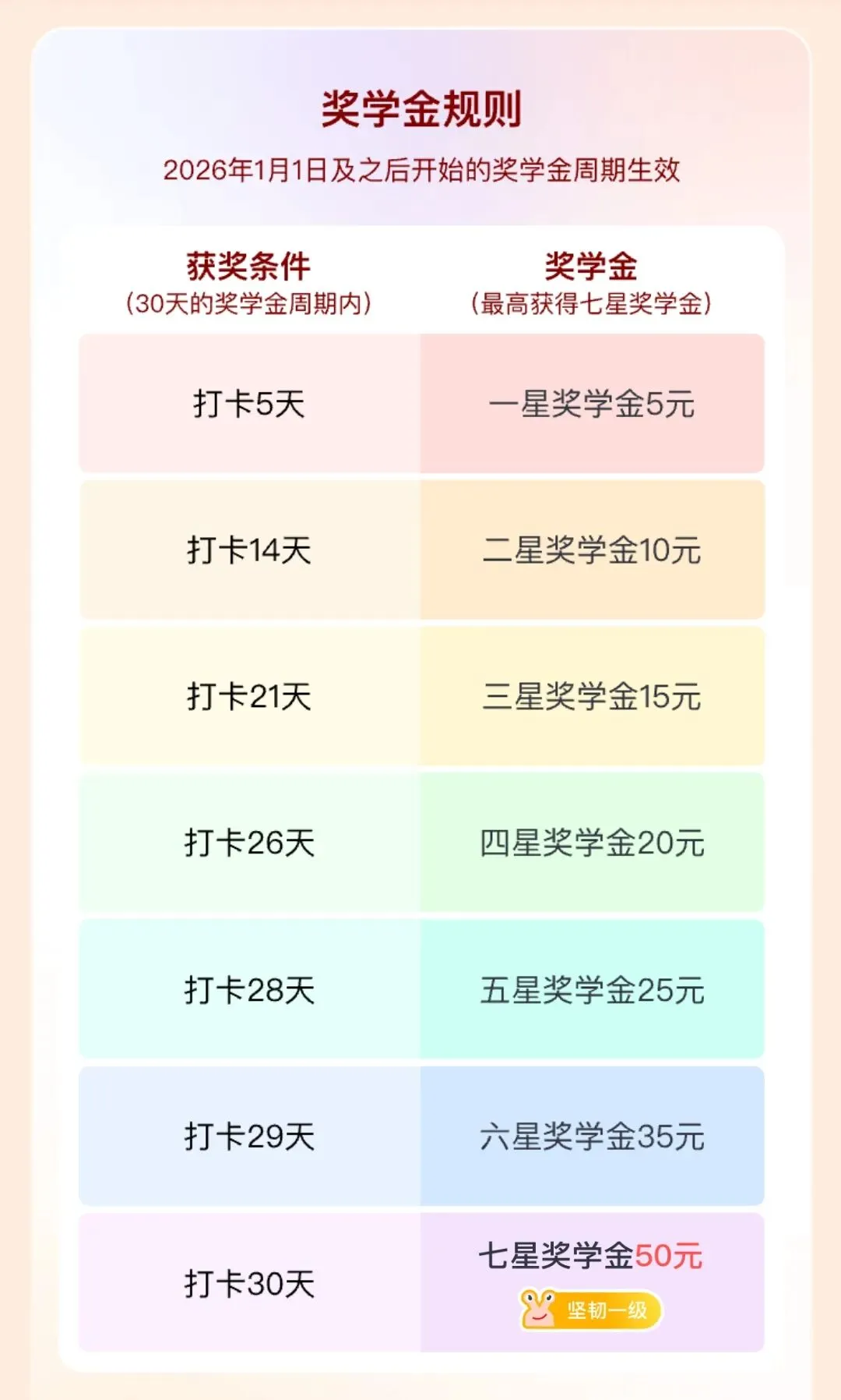 他点开拓词App,界面截然不同:严格的30天周期,清晰的学习记录,30天全勤奖励是实打实的50元现金,29天降至35元,28天降至25元……更重要的是——这里几乎看不到任何“糊弄”的痕迹。