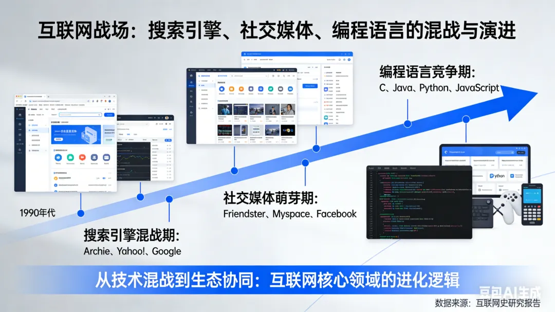 预告:在《历史回溯(下)》中,我们将进入互联网、信息与虚拟世界的战场,看看搜索引擎、社交媒体、编程语言是如何从混战中走出的,并思考:AI时代的终极“协议”,将会由什么力量来定义?
