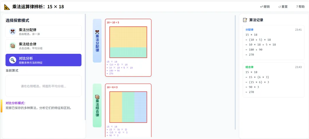 【Ai应用(四下)】乘法运算律辨析工具升级!分配律 & 结合律,可视化彻底分清