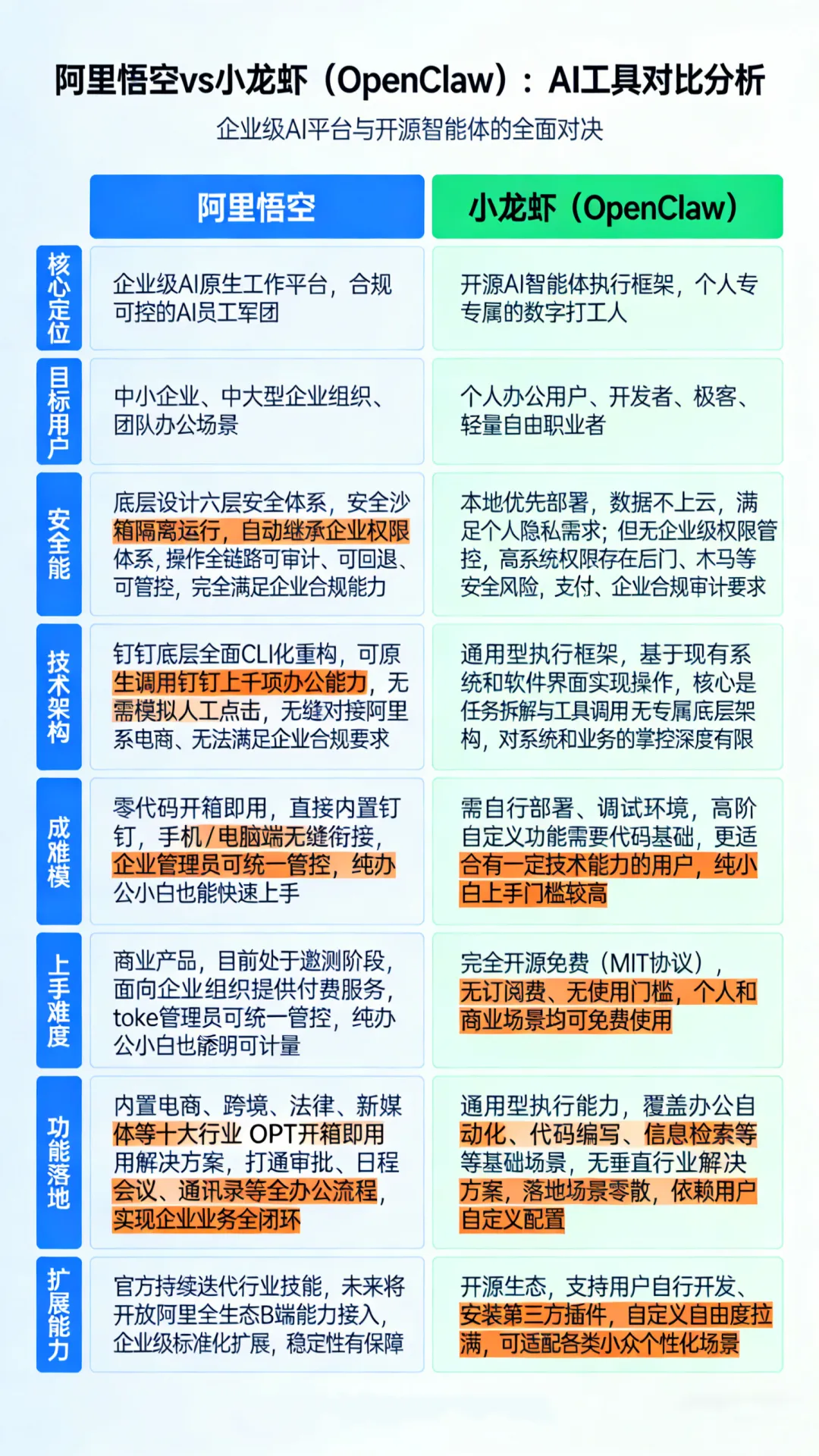 阿里悟空vs小龙虾(OpenClaw):AI工具对比分析