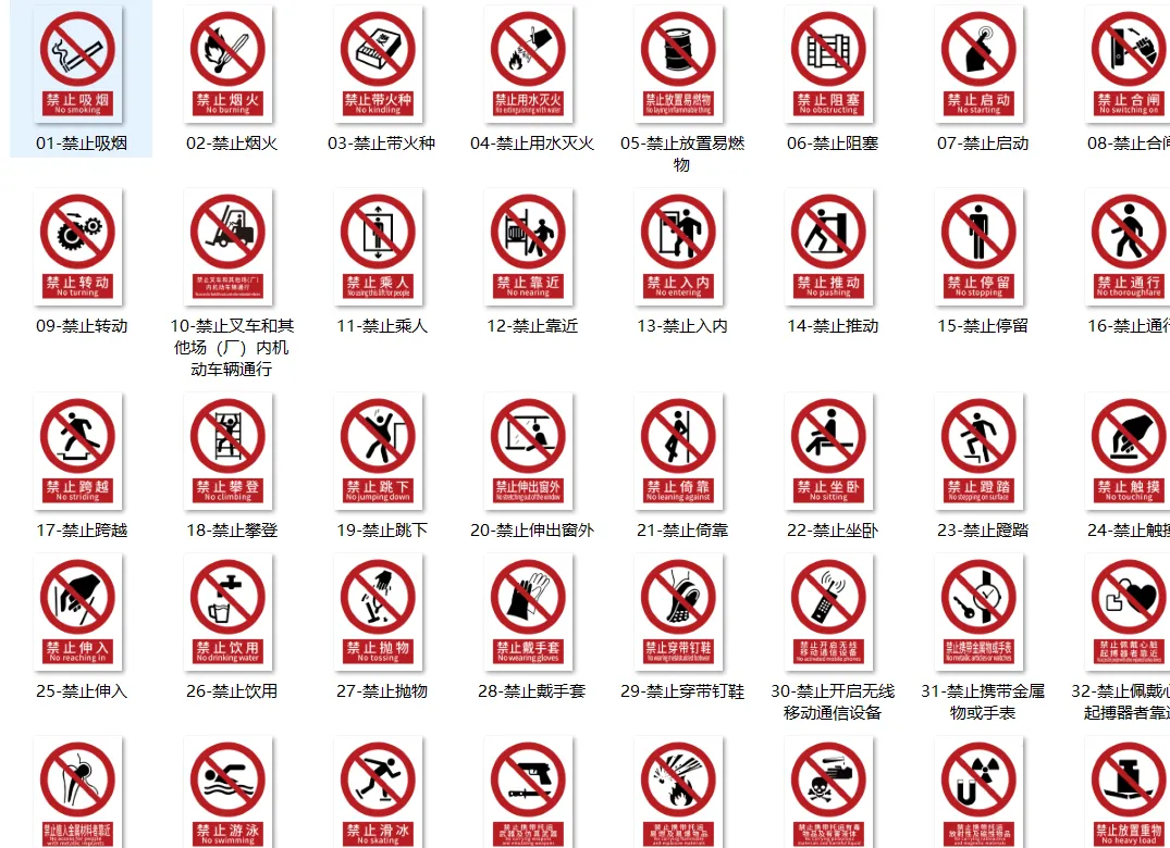 ✅ 新增37个:涵盖新兴风险场景,比如禁止电动自行车进入、禁止酒后作业、当心有限空间、当心充电电池、紧急集合点等,填补了以往空白;