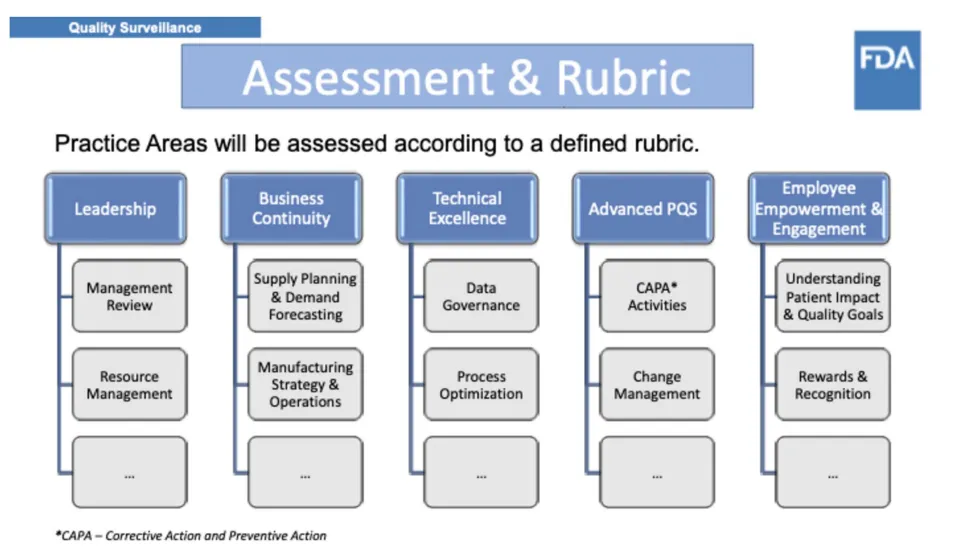 FDA. CDER’s quality management maturity (QMM) program: practice areas and prototype assessment protocol development [Internet]. Silver Spring, MD; 2023. Retrieved 7 May 2025; from: https://www.fda.gov/media/171705/download