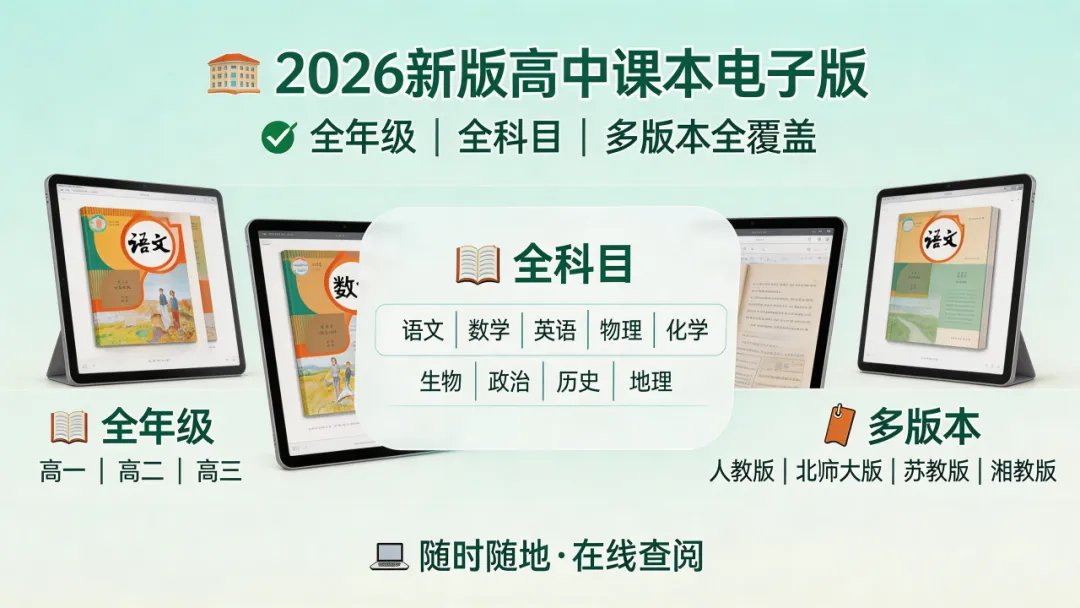 2026新版本高中课本电子版【覆盖全年级、全科目、多版本】
