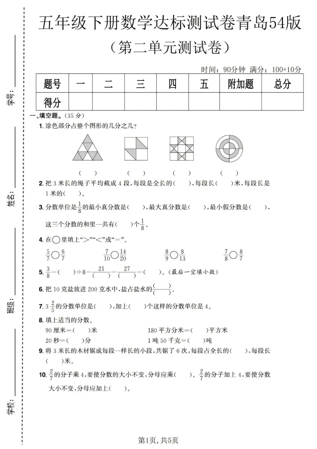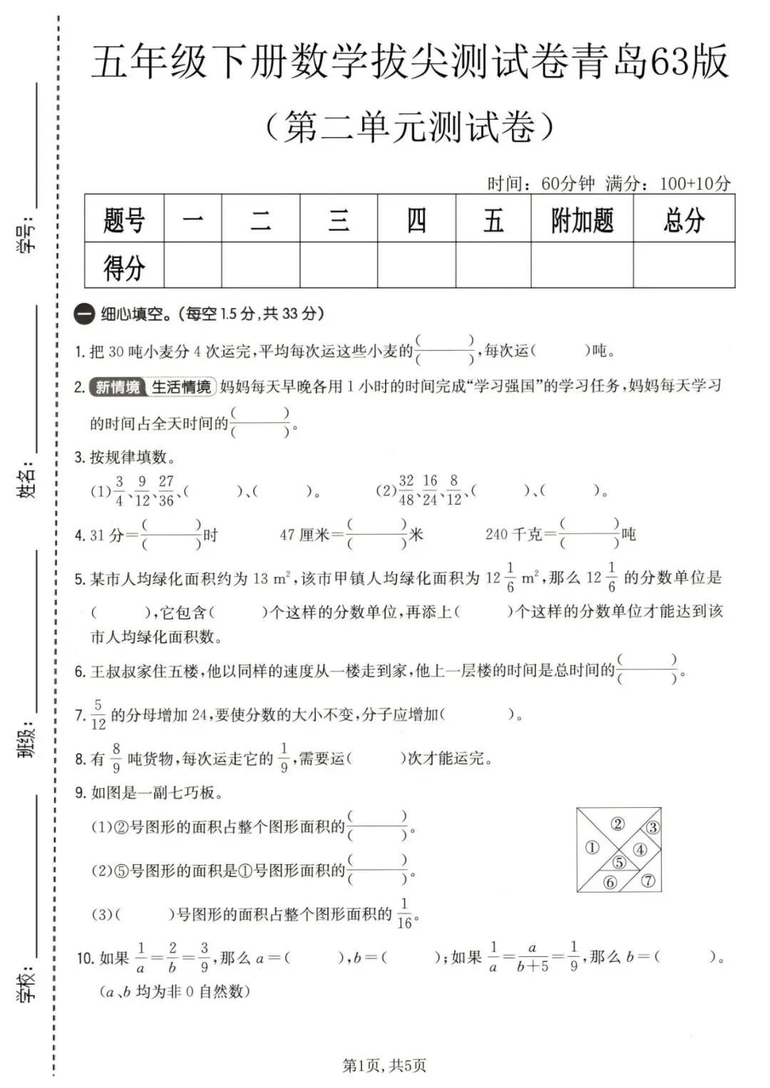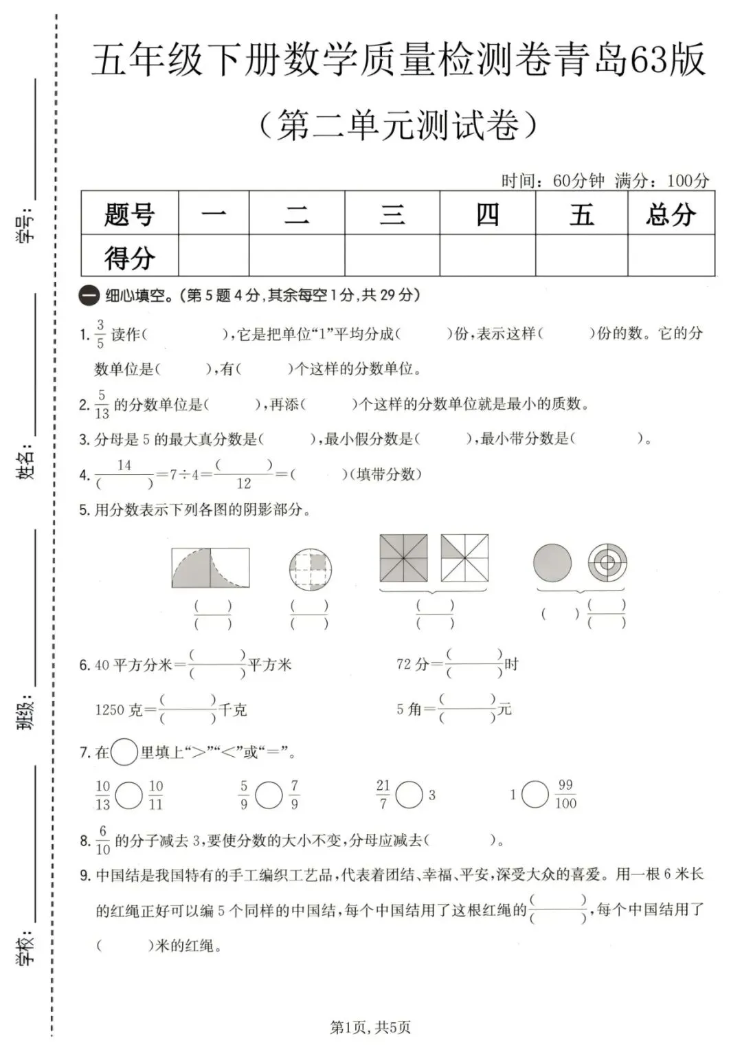 🌟2026春五年级下册青岛63版数学,第二单元检测试卷3套,有答案,电子版可下载打印。这3套试卷紧扣五年级下册第二单元知识点, 含达标卷、质量卷、提升卷,提前帮孩子检测学习成果,查漏补缺再巩固提高,从基础巩固到能力提升全照顾到,需要的家长朋友抓紧领回去,给孩子练起来吧💪!