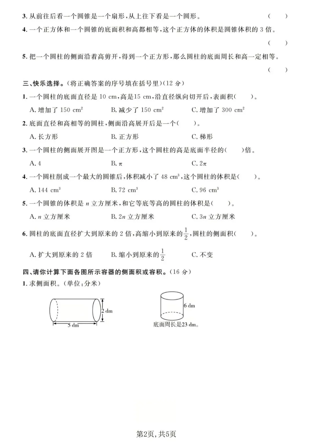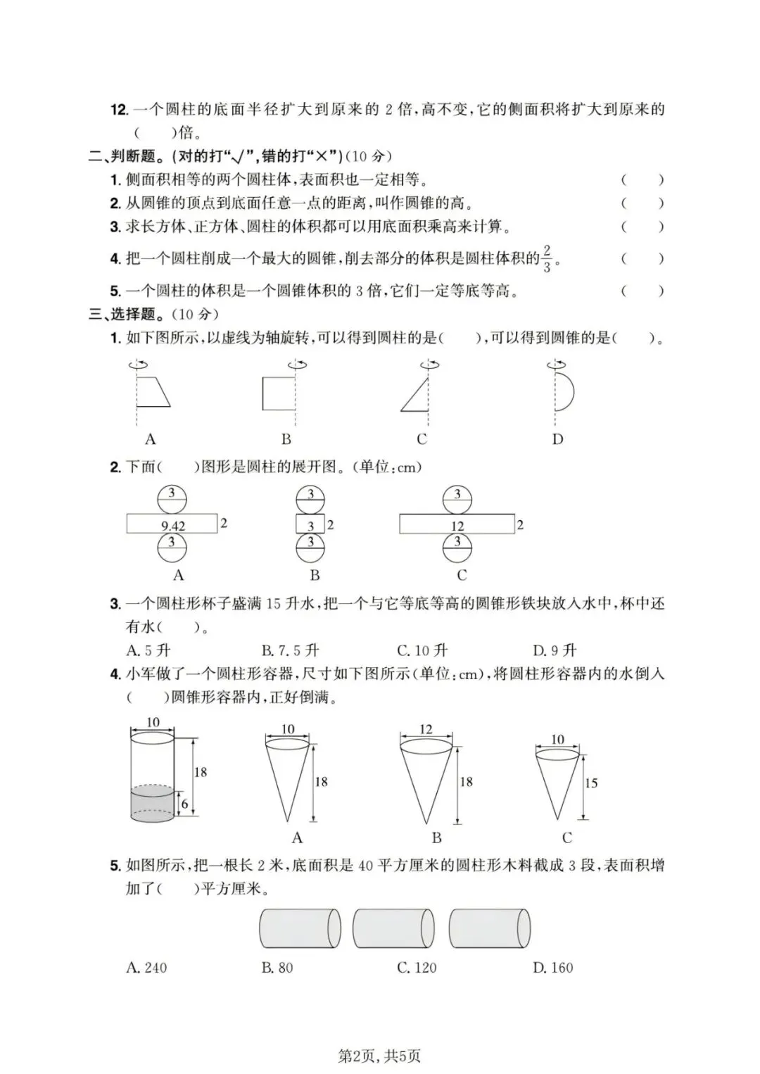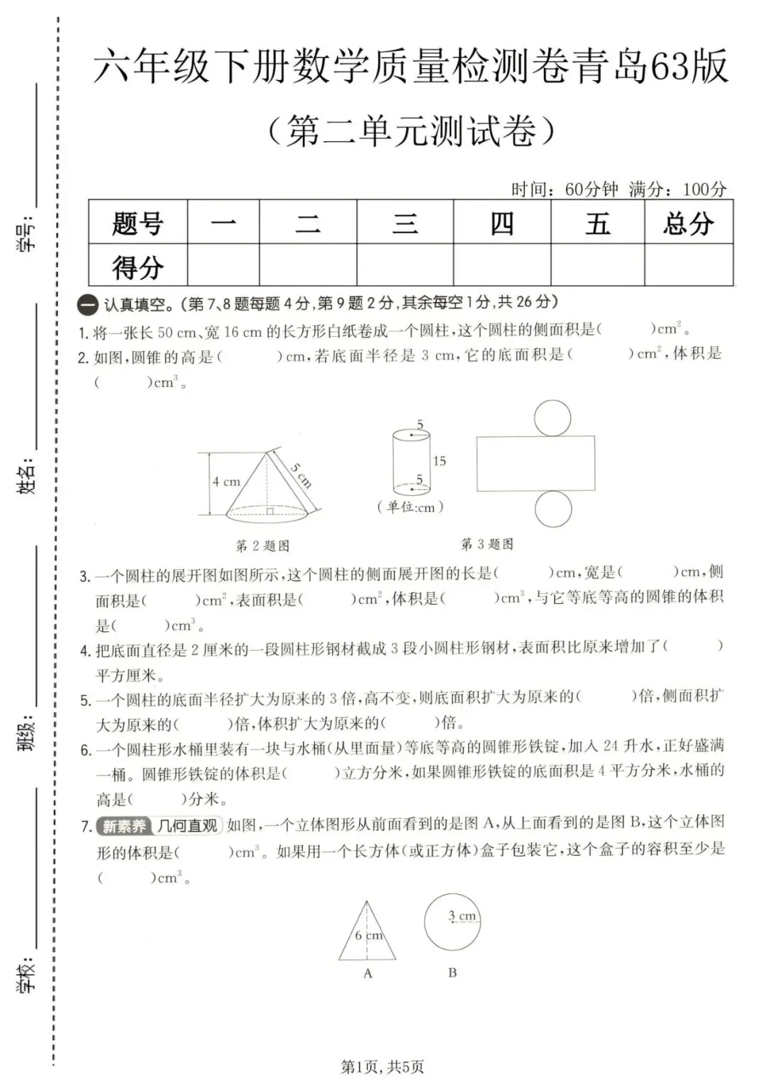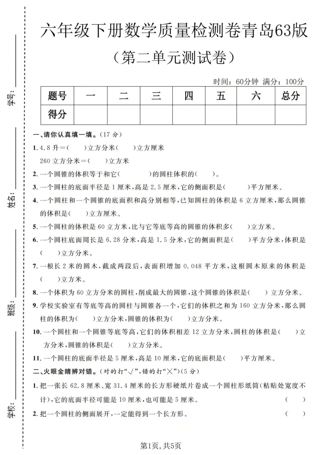 🌟2026春六年级下册青岛63版数学,第二单元检测试卷3套,有答案,电子版可下载打印。这3套试卷紧扣六年级下册第二单元知识点, 含质量卷、提升卷,提前帮孩子检测学习成果,查漏补缺再巩固提高,从基础巩固到能力提升全照顾到,需要的家长朋友抓紧领回去,给孩子练起来吧💪!