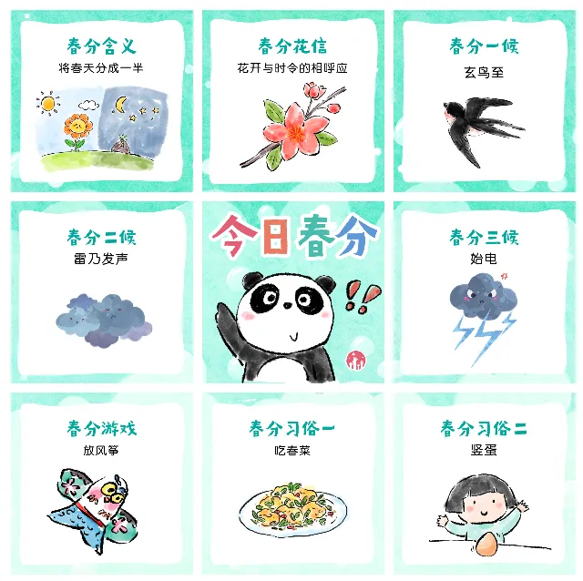 好看的春分习俗卡片,老师们可以下载后用教学和活动或者直接分享给家长小朋友们。