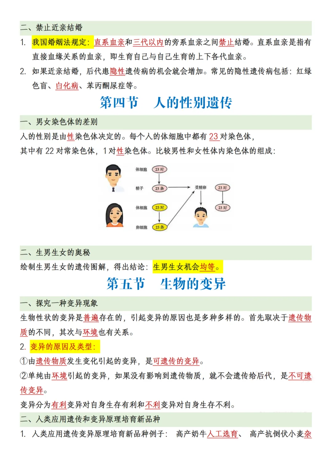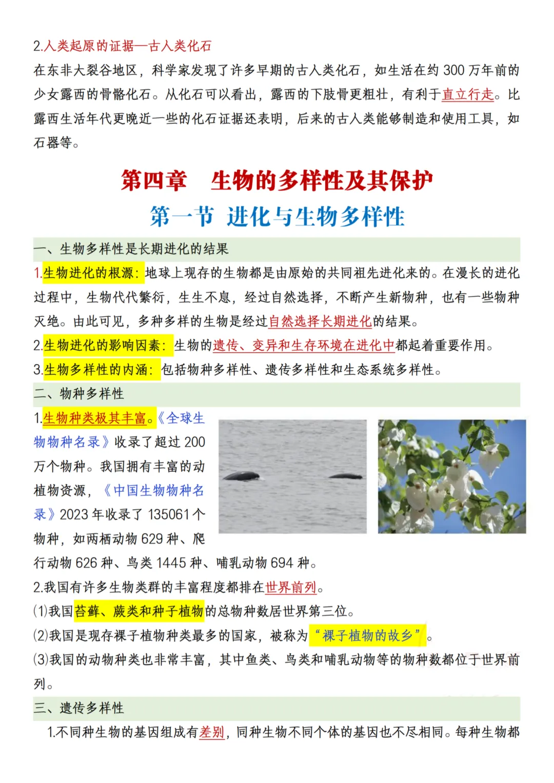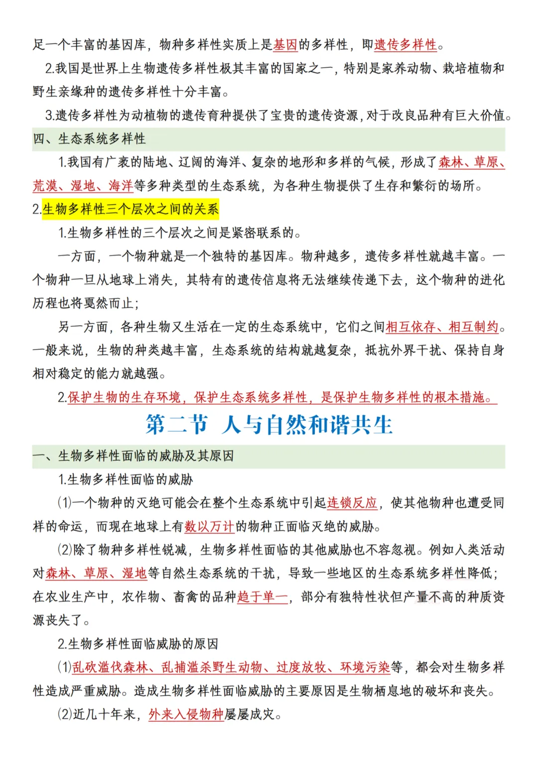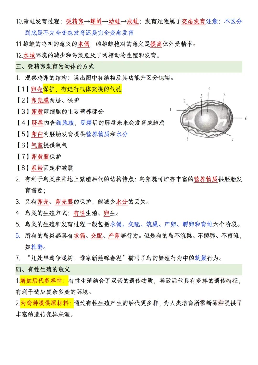 26年春【八下人教生物】知识点,共13页。系统知识架构教材以 “生命的延续 — 遗传的规律 — 进化的奥秘 — 多样性的保护” 为核心脉络,系统讲解生物的生殖、遗传、进化及多样性保护,帮助学生建立完整的生物学知识体系。重点突出,贴合学习需求内容覆盖八年级生物学习重点,如无性生殖和有性生殖的特点与应用、基因的传递规律、生物进化的历程及自然选择学说,同时强调生物多样性保护的重要性,帮助学生理解人与自然和谐共生的理念。理论与实践结合教材设计了丰富的实践探究活动,如植物的扦插或嫁接、动物饲养实验等,培养学生的动手能力和科学探究精神,提升解决实际问题的能力。抽象知识直观化通过彩色图表和示意图,将抽象的生物学概念(如基因传递、进化历程)转化为直观的视觉信息,帮助学生轻松理解和掌握难点知识。提升核心素养教材不仅注重知识传授,更强调培养学生的生命观念、科学思维和探究实践能力,帮助学生形成正确的生态保护意识和社会责任感。需要的家长抓紧打印出来,让孩子写一写,练一练吧。