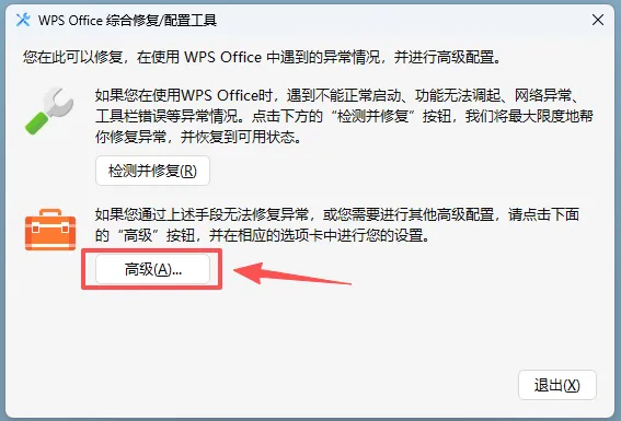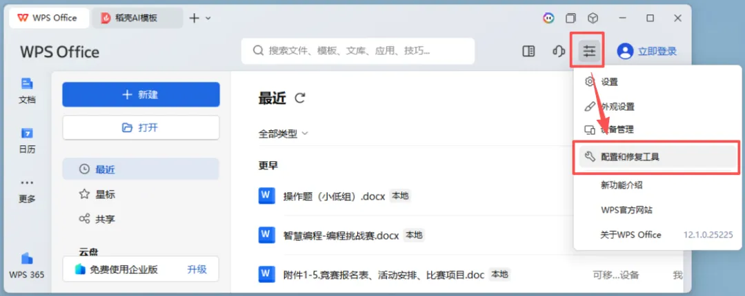 按钮,在弹出的菜单中选「配置和修复工具」,点击进入。