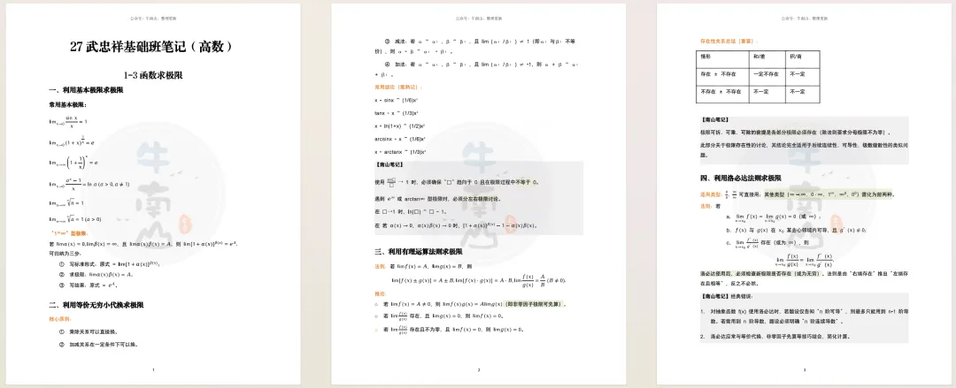 27考研武忠祥基础班精华笔记【电子版pdf可打印】
