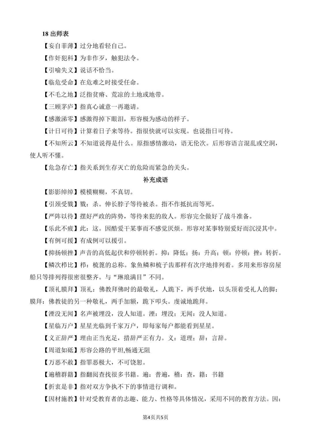 涵盖课内高频成语、易错成语、近义辨析、语境运用,