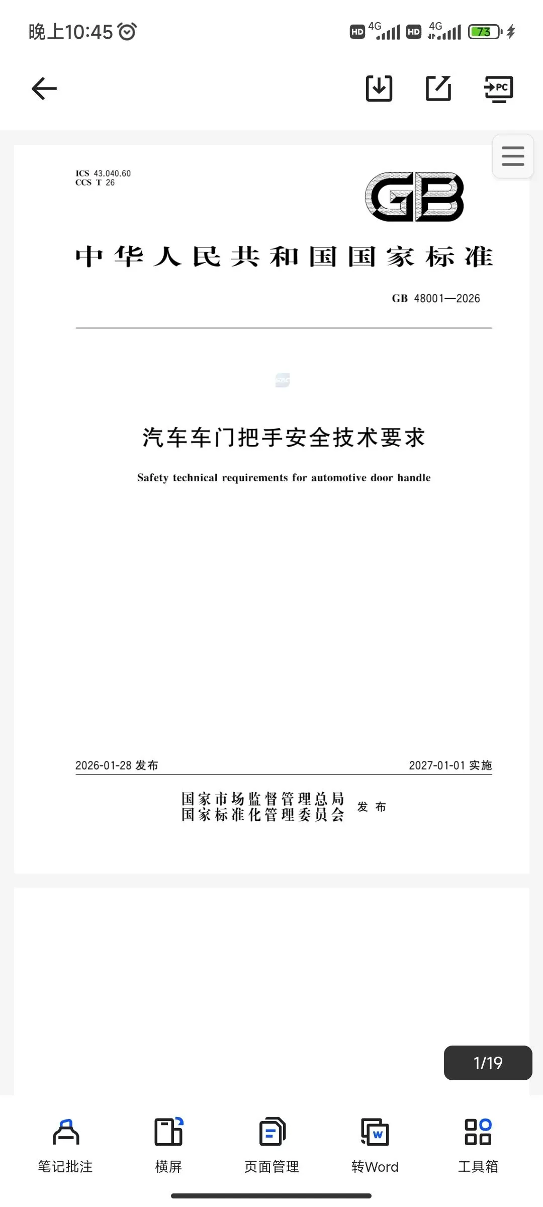 原文【PDF】可下载|汽车车门把手安全技术要求