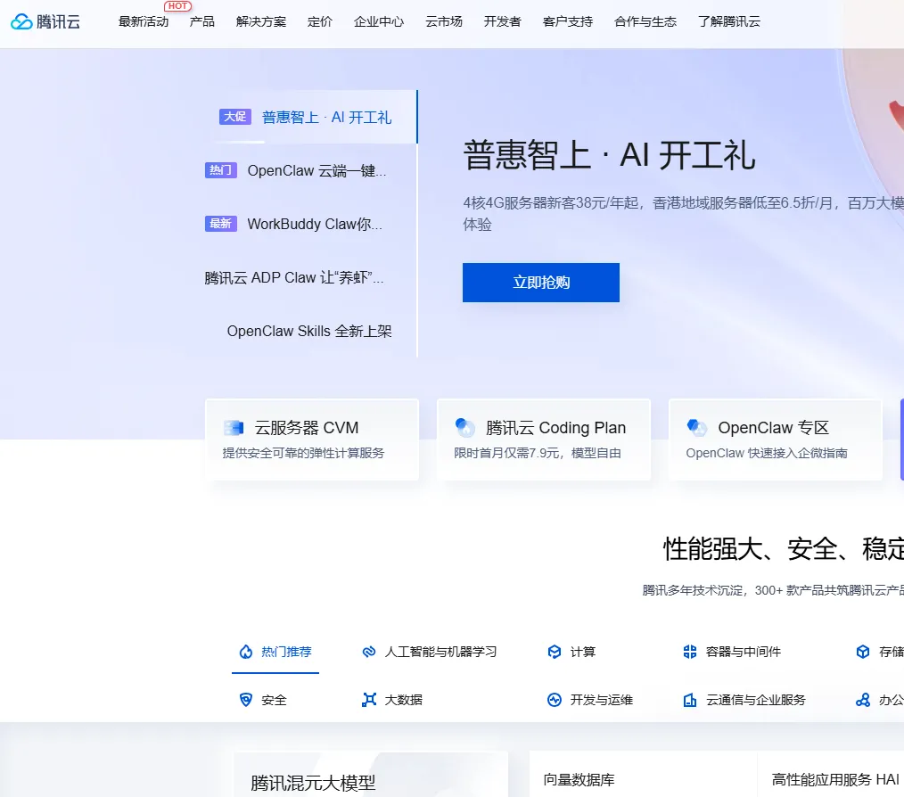 首先,你需要一台云服务器作为 OpenClaw 的“家”。腾讯云的轻量应用服务器(Lighthouse)是官方推荐的选择,因为它开箱即用,操作简单 。