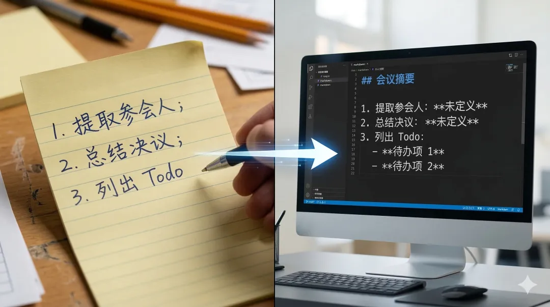 ❌ 错误写法:“帮你写会议纪要。”(太模糊,AI 不知道啥时候触发) -