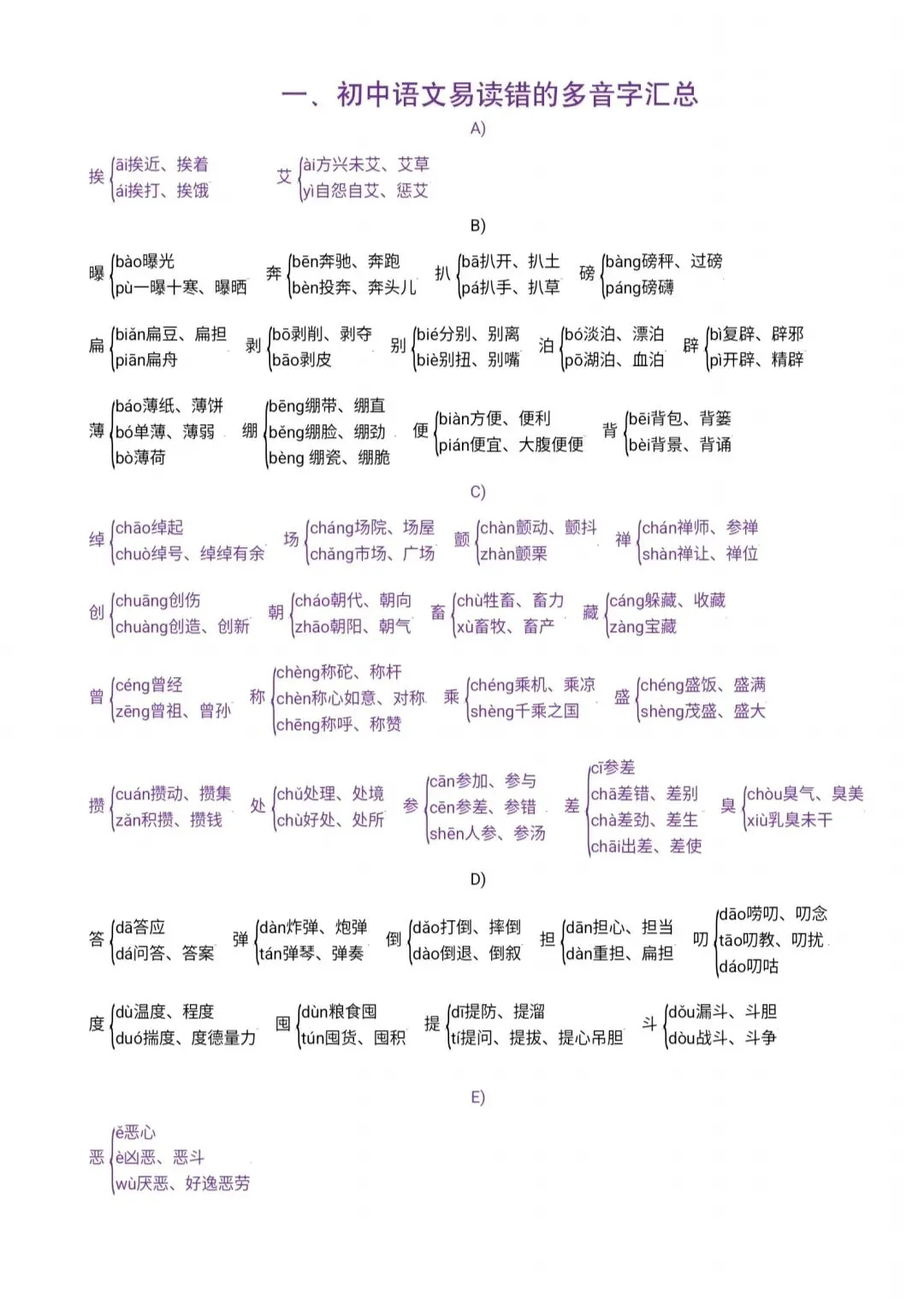 【备考】初中语文易错多音字汇总pdf版