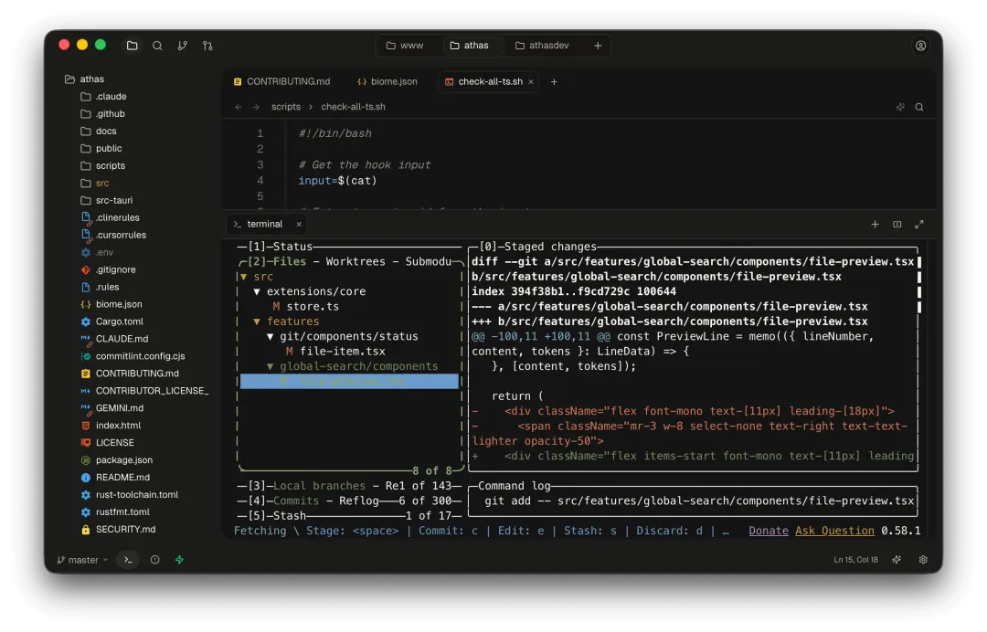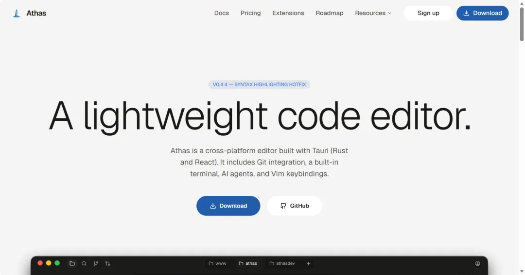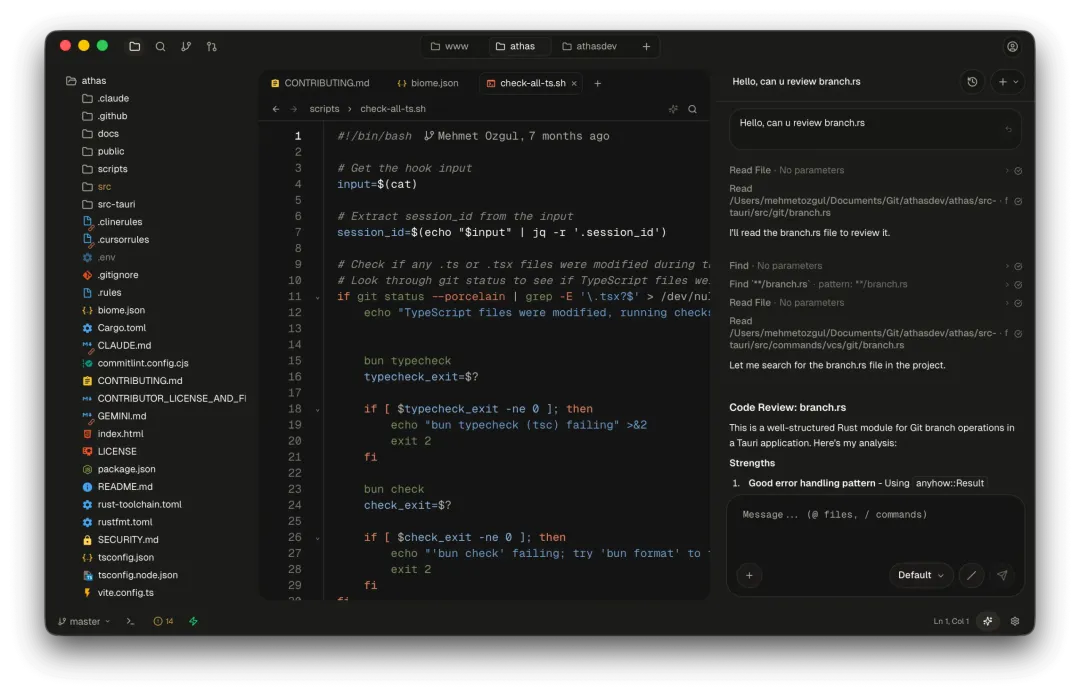 Athas 是一款注重速度、现代化体验、AI 集成以及可扩展性的轻量级代码编辑器。