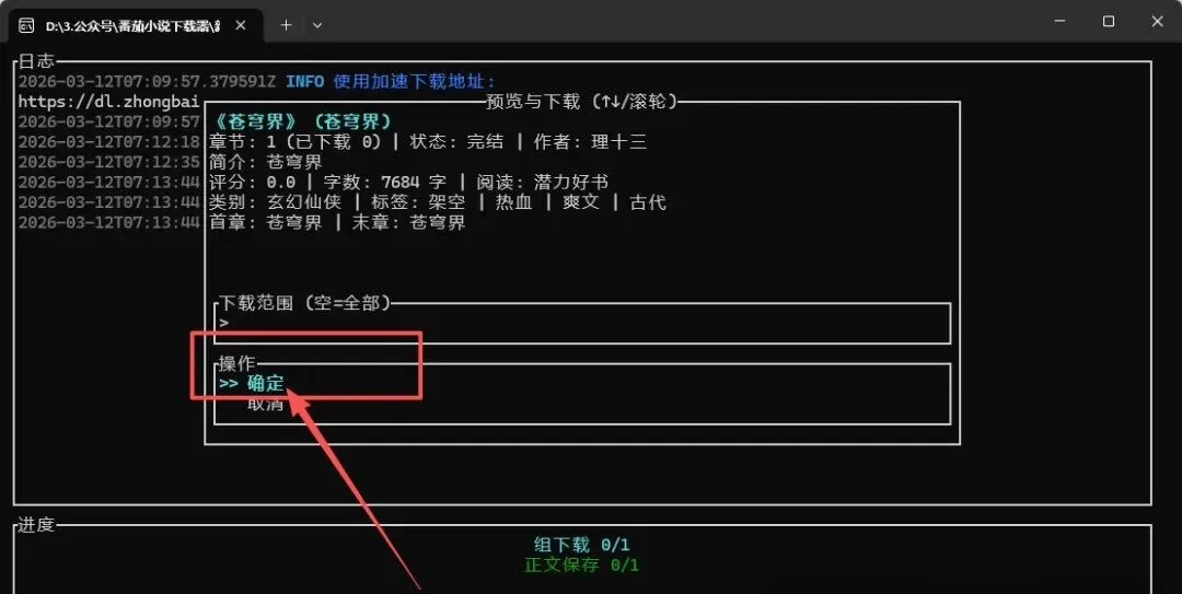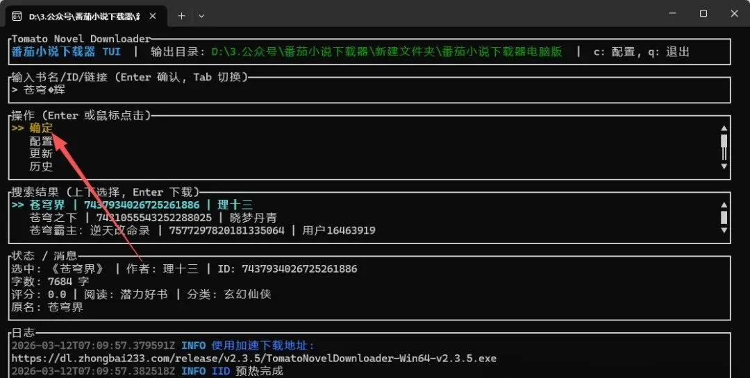 2.点击【确定】就是开始搜索相关小说