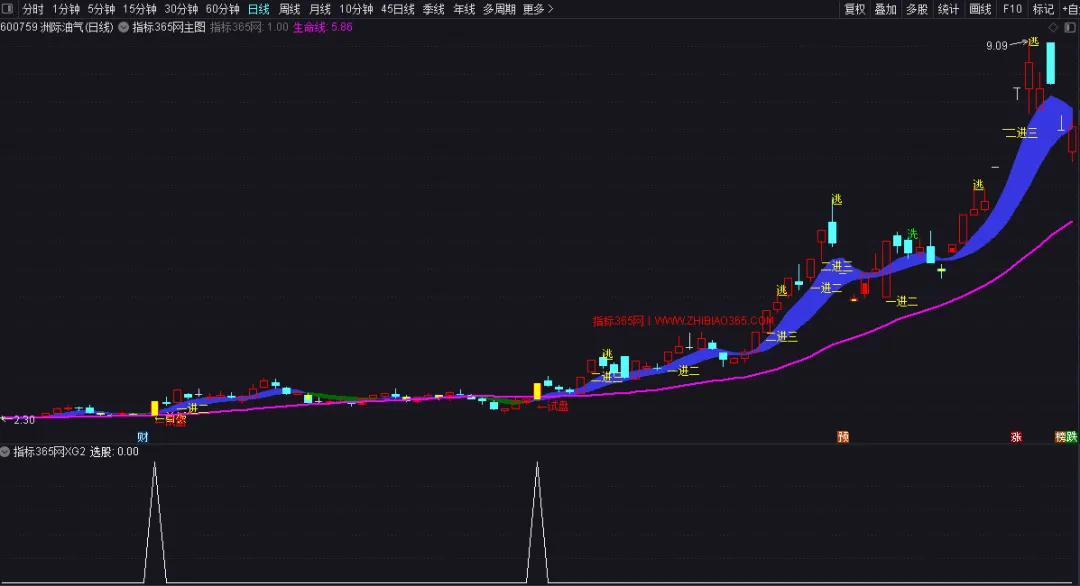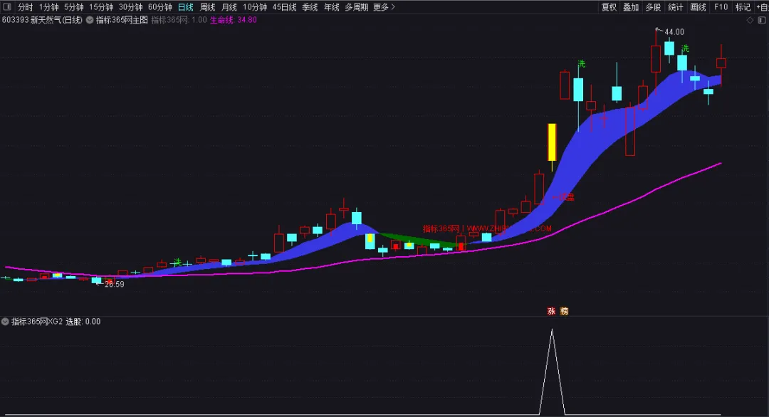 生命线:MA(CLOSE,30),COLORFF00FF,LINETHICK2;