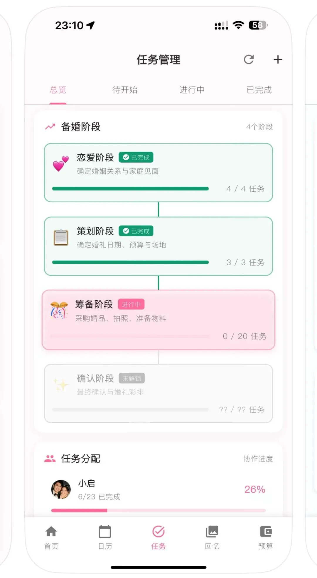 开发过程中,夫妻俩也遇到过不少难题,最大的阻碍不是写代码,而是发掘备婚用户的个性化需求。备婚的事情琐碎又没有统一指南,不同家庭还有不同的要求,一开始他们只是简单堆砌工具功能,后来发现并不实用。结合自己的备婚经历和和用户的深度沟通,他们才意识到,新人需要的是一个全流程、能和伴侣协同的备婚平台,于是开始沉下心打磨细节,不做快节奏的速成工具,而是想把《婚启》打造成能真正解决问题的长期产品。