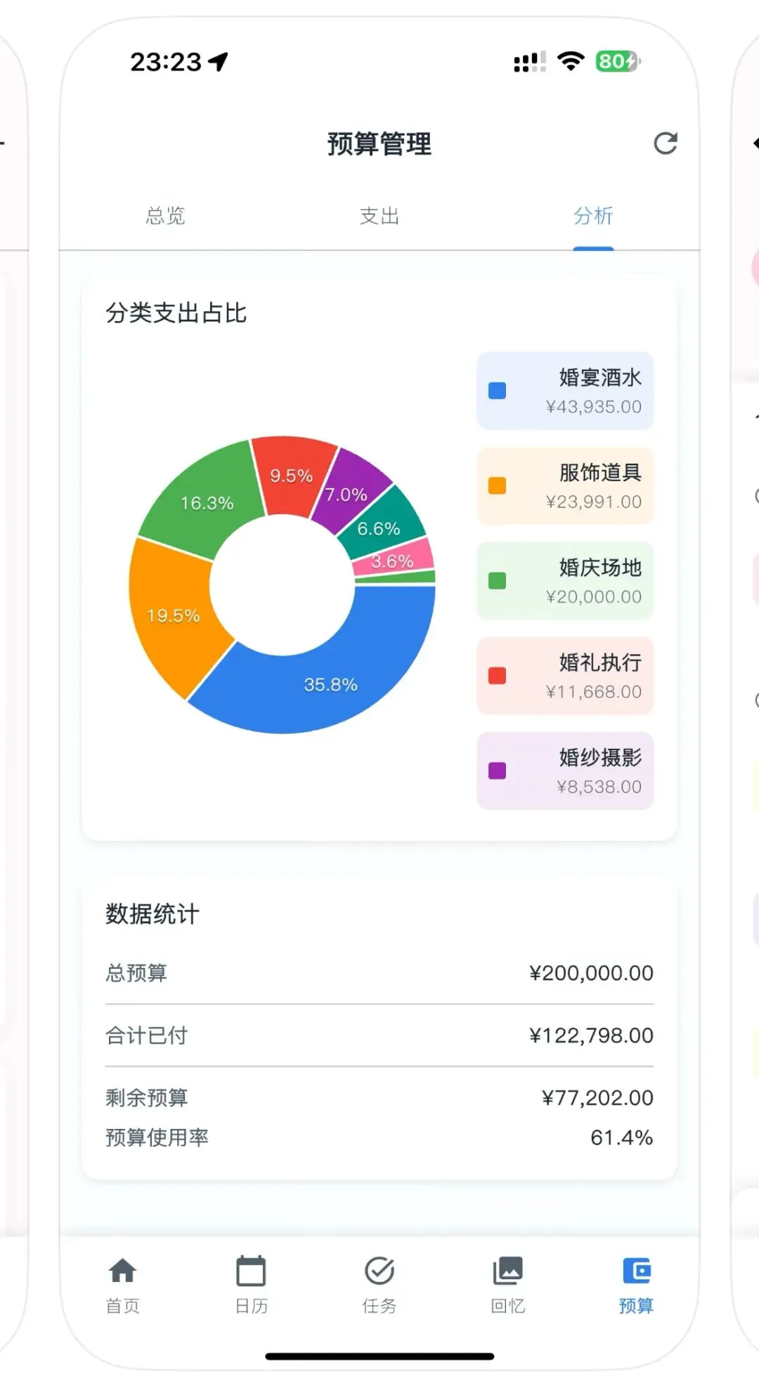 翻看用户数据,夫妻俩发现使用APP的新人男女比例约为3:7,女生占了大多数。这也很贴合现实,大多时候都是女生更关注婚礼的各种细节,一般由女生先下载APP,再邀请伴侣一起参与备婚。而APP的协同备婚功能,也正好能让双方一起打理备婚事宜,分担女生的备婚压力,缓解焦虑。