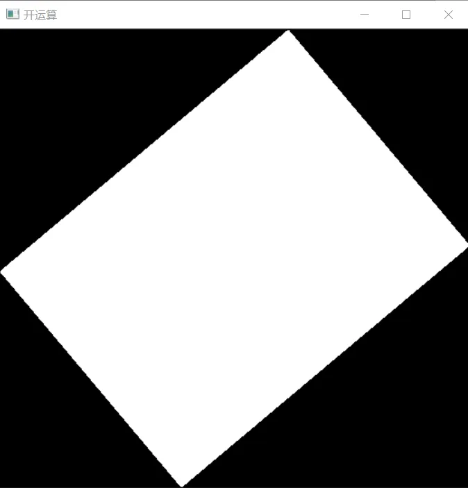 Mat src = imread("D:/opencv练习图片/图片矫正.png");imshow("原图片", src);// 二值图像Mat gray, binary;cvtColor(src, gray, COLOR_BGR2GRAY);threshold(gray, binary, 0, 255, THRESH_BINARY_INV| THRESH_OTSU);imshow("二值化", binary);// 定义结构元素Mat se = getStructuringElement(MORPH_RECT, Size(3, 3), Point(-1, -1));morphologyEx(binary, binary, MORPH_OPEN, se);imshow("开运算", binary);