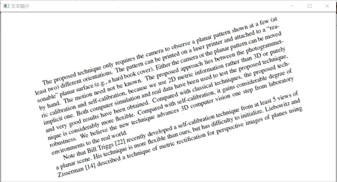 对于文本图像(如图),它没有明显的轮廓边缘去求四顶点。但是经过深入分析,可以发现:文本的每一行文字都是呈一条直线,而且这些直线都是平行的!