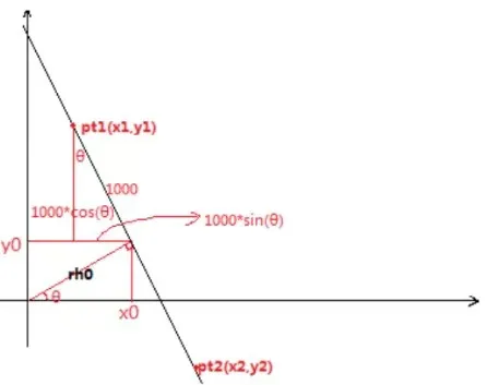 从平面坐标转换到霍夫空间,最终输出是找到直线的起点和终点(直角坐标系)
