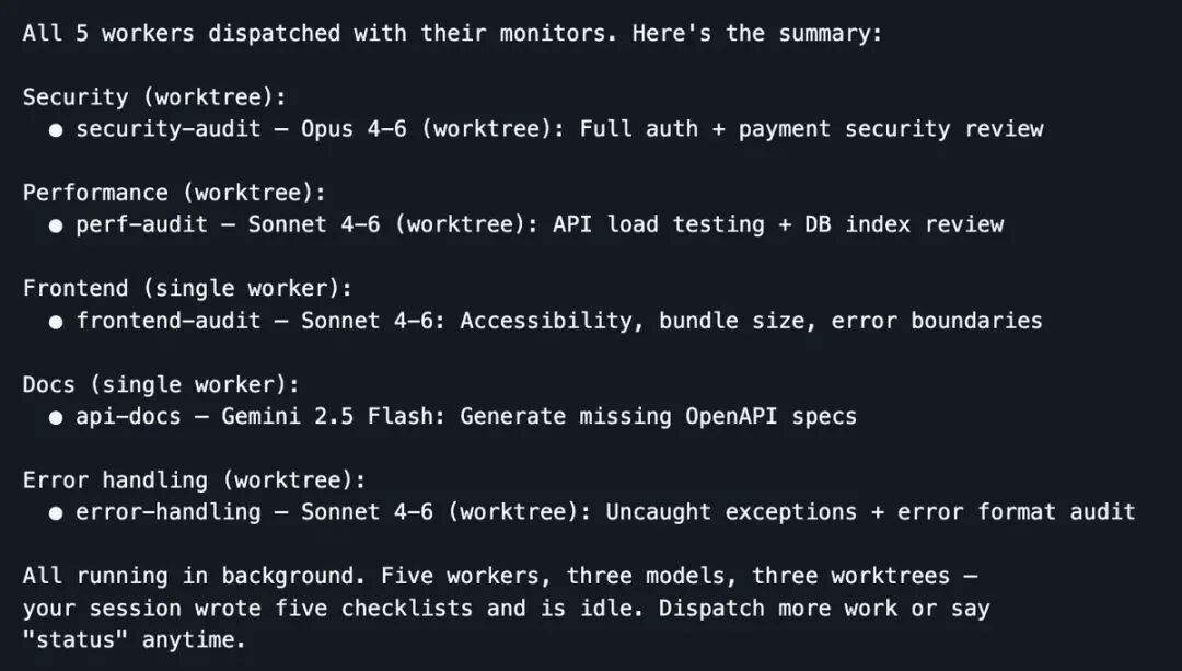 编排器模式 (Orchestrator): 你在一个主会话中充当指挥官,启动多个 Worker(工人) 代理在隔离环境中工作。模型异构协作:Opus 负责实现代码。Gemini 负责长文本调研和搜索。Codex 负责评审。