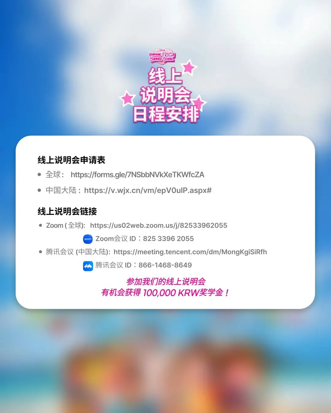 参加线上说明会的同学有机会获得 100,000 KRW 奖学金!