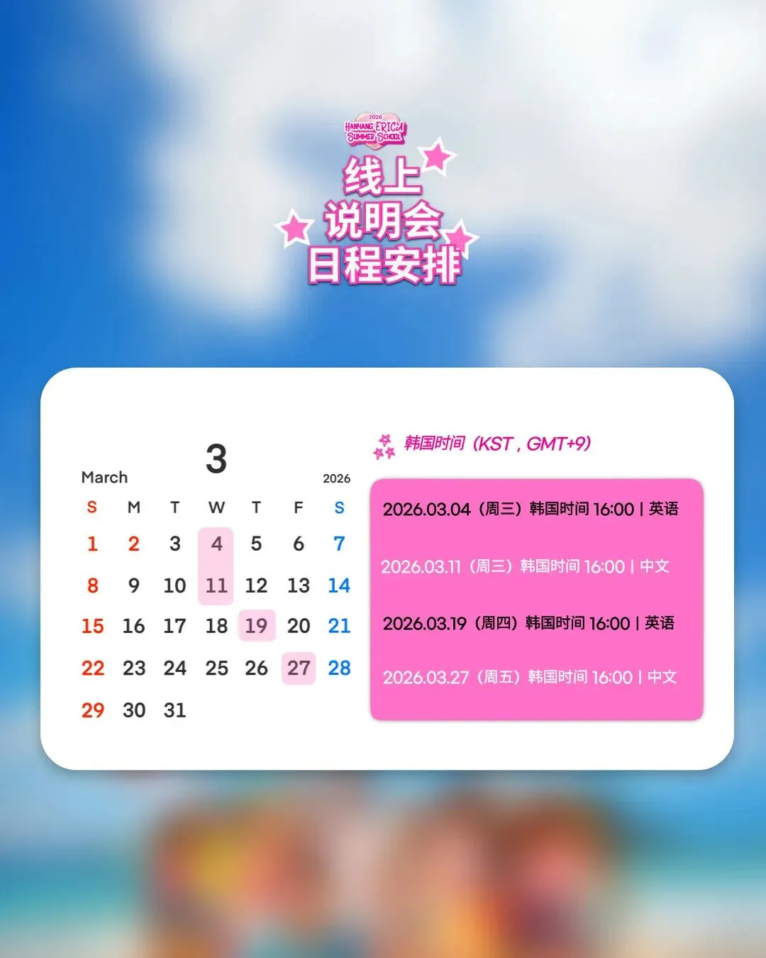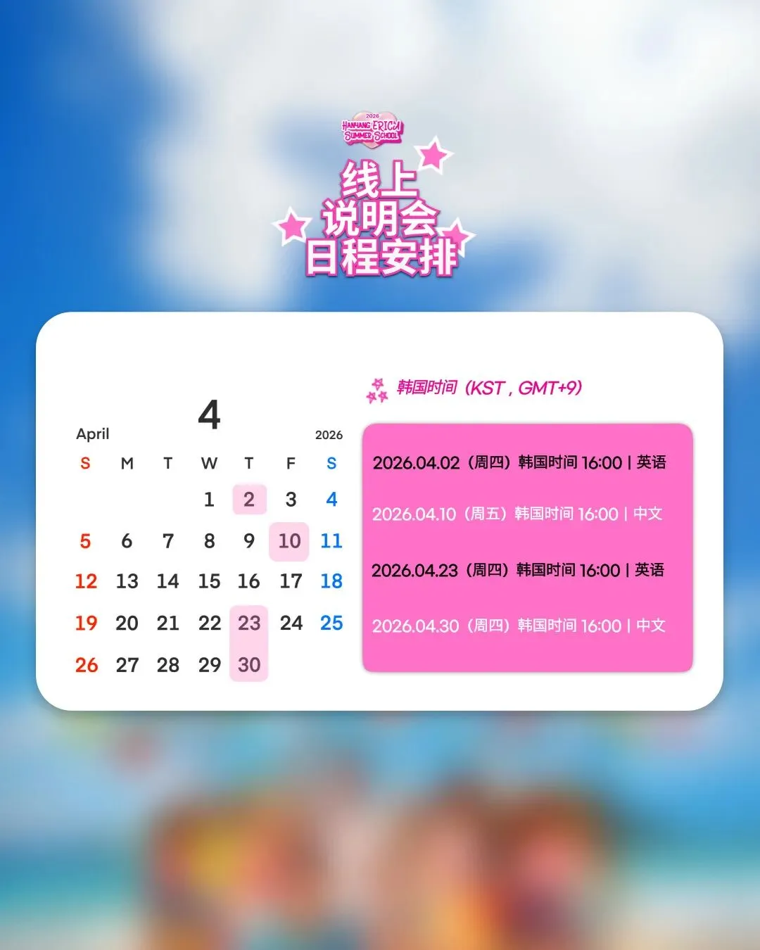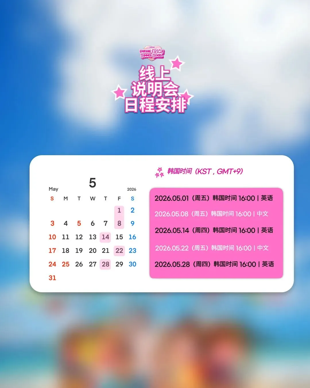 如果你也想在 2026 夏天来 ERICA 体验韩国大学校园生活,记得提前报名参加我们的 Info Session~我们线上见!💙✨
