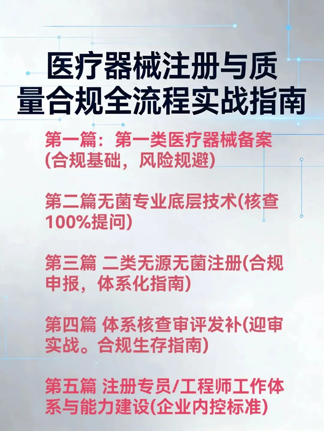 分享一个体系化学习电子版付费资料《医疗器械注册与质量合规全流程实战指南(2026年现行版)》