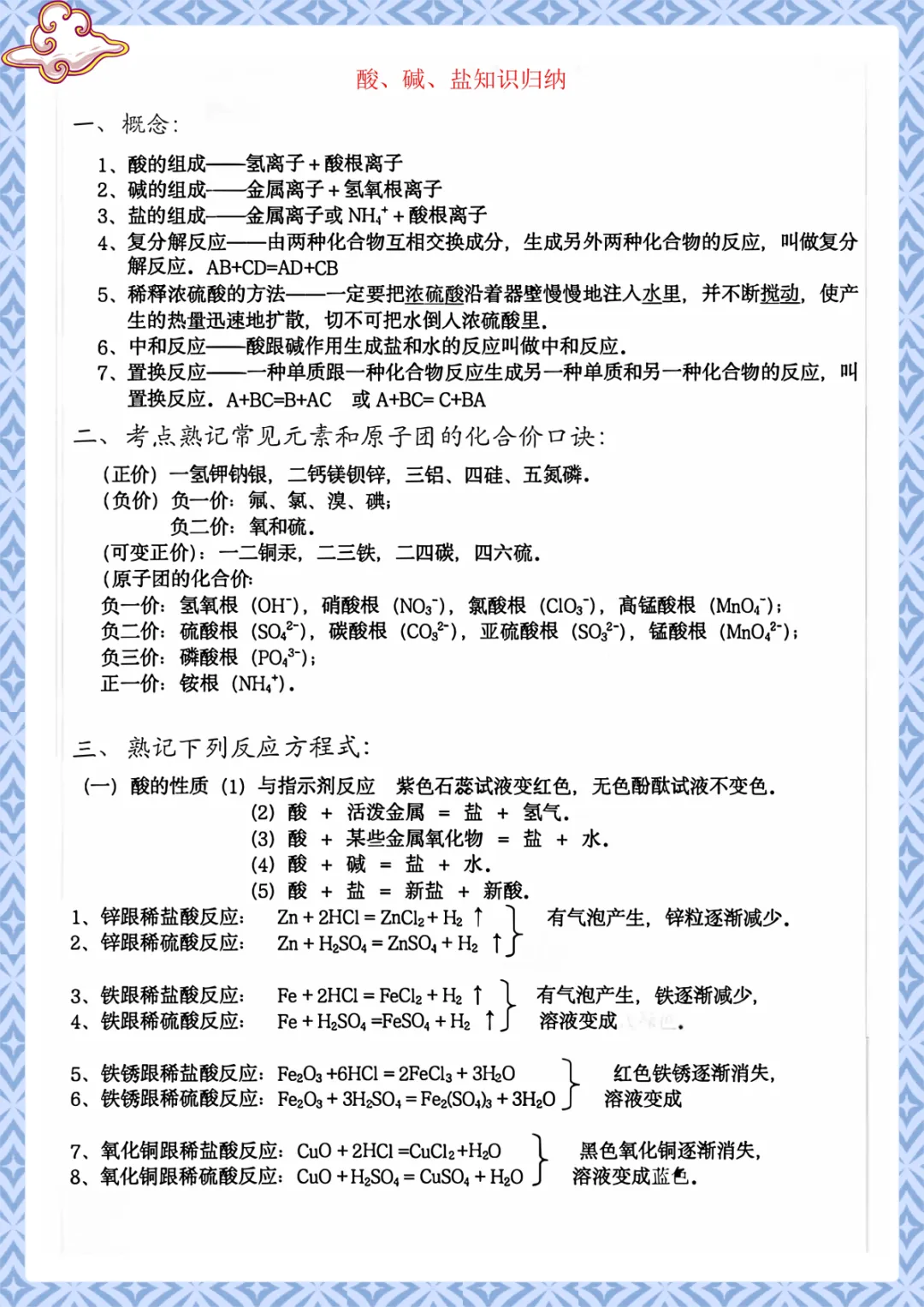 初中化学《酸碱盐》重要知识点总结 电子版可下载打印