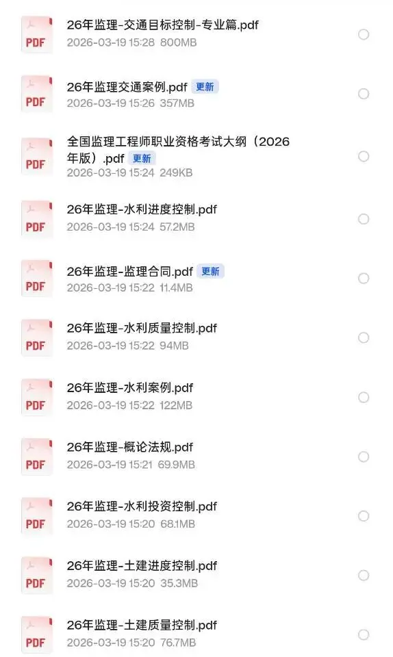 2026年监理工程师,各个专业和基础课的电子版教材给大家整理到下面链接里面了,大家有需要的话把下面链接复制到夸克APP软件里边就能够直接下载了,大家点点关注,下一期我给大家分享一建和二建的电子版教材