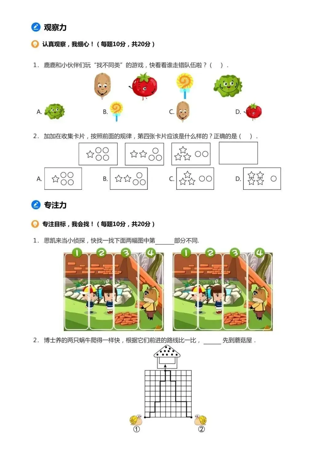 蓝天思维逻辑能力诊断-数学-大班(电子版) 今天给大家分享的是蓝天思维逻辑能力诊断-数学-大班,围绕数感建构、图形认知、逻辑推理、生活应用等核心维度设计诊断内容,紧扣幼小衔接数学核心考点,摒弃枯燥刷题,以符合幼儿思维的形式设计题目,既能全面检测孩子的数学逻辑基础,又能激发孩子的数学学习兴趣。 内容截图预览 限时免费领取: (公众号发文24小时内) 公众号对话框中发送关键字:21779