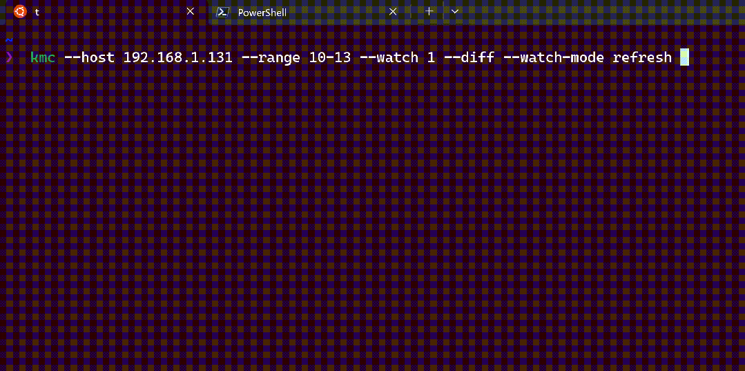 kmc --host 192.168.1.131 --range 10-13 --watch 1 --diff --watch-mode refresh
