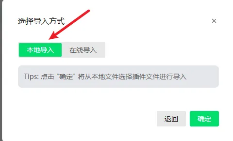 接着选择“本地导入”,在下载的压缩包内已打包好插件,解压后选择对应的插件导入即可。