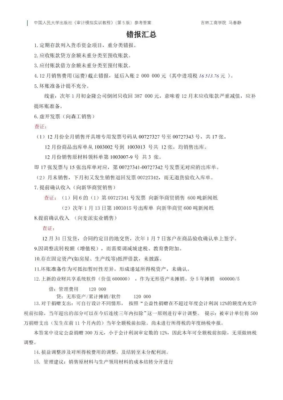 审计模拟实训教程 (第5版 )参考答案PDF-马春静 完整 资源链接 https://pan.quark.cn/s/a1c0a18bac3d 资料搜集自网络,资料免费分享,仅供个人学习交流使用,请勿用于商业用途!