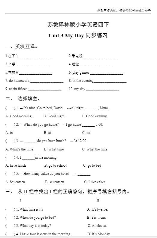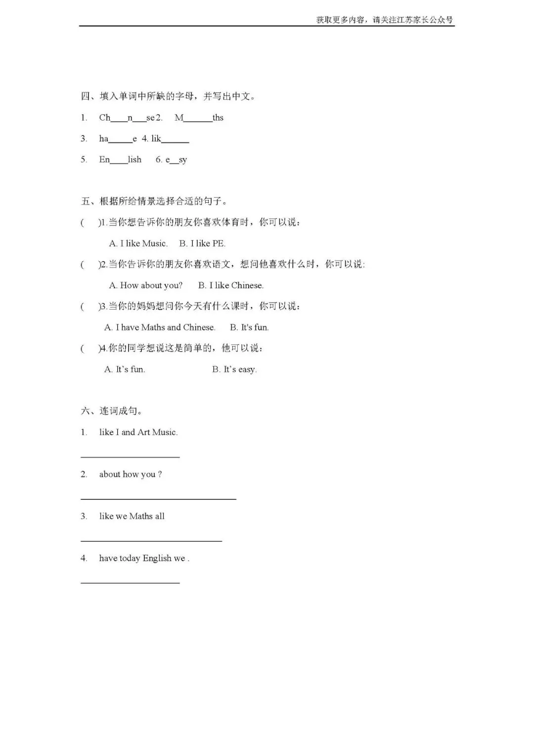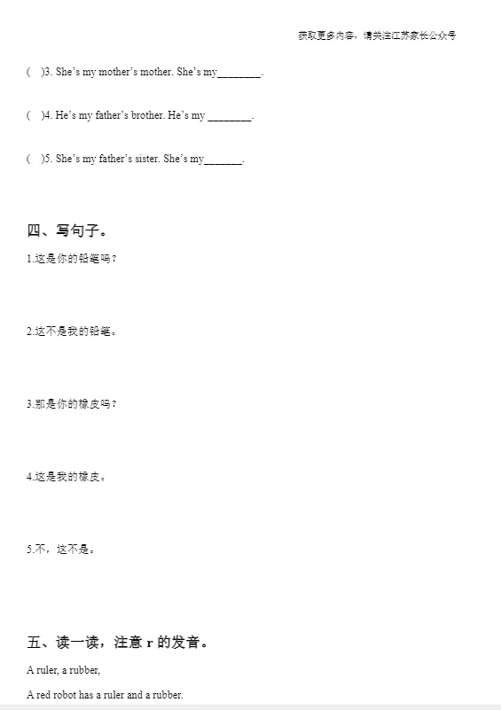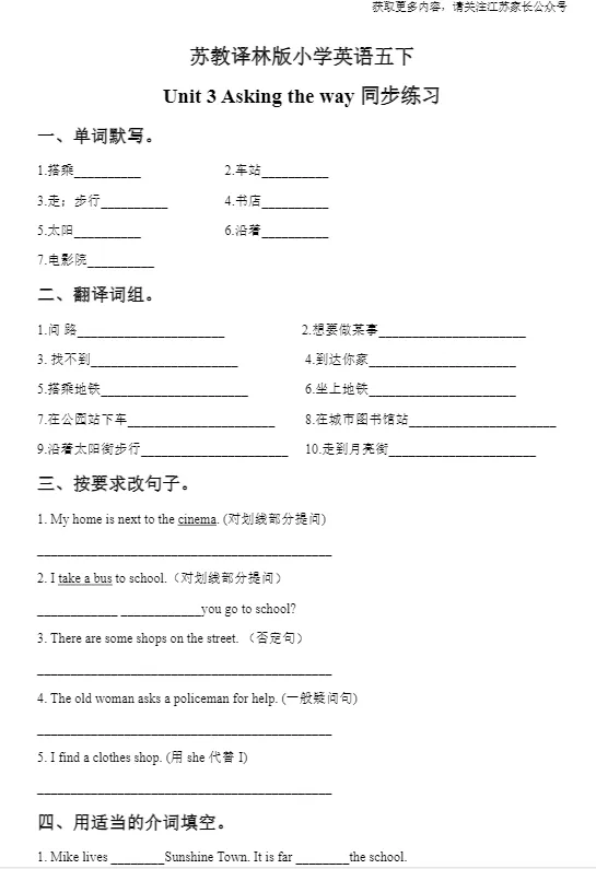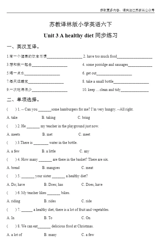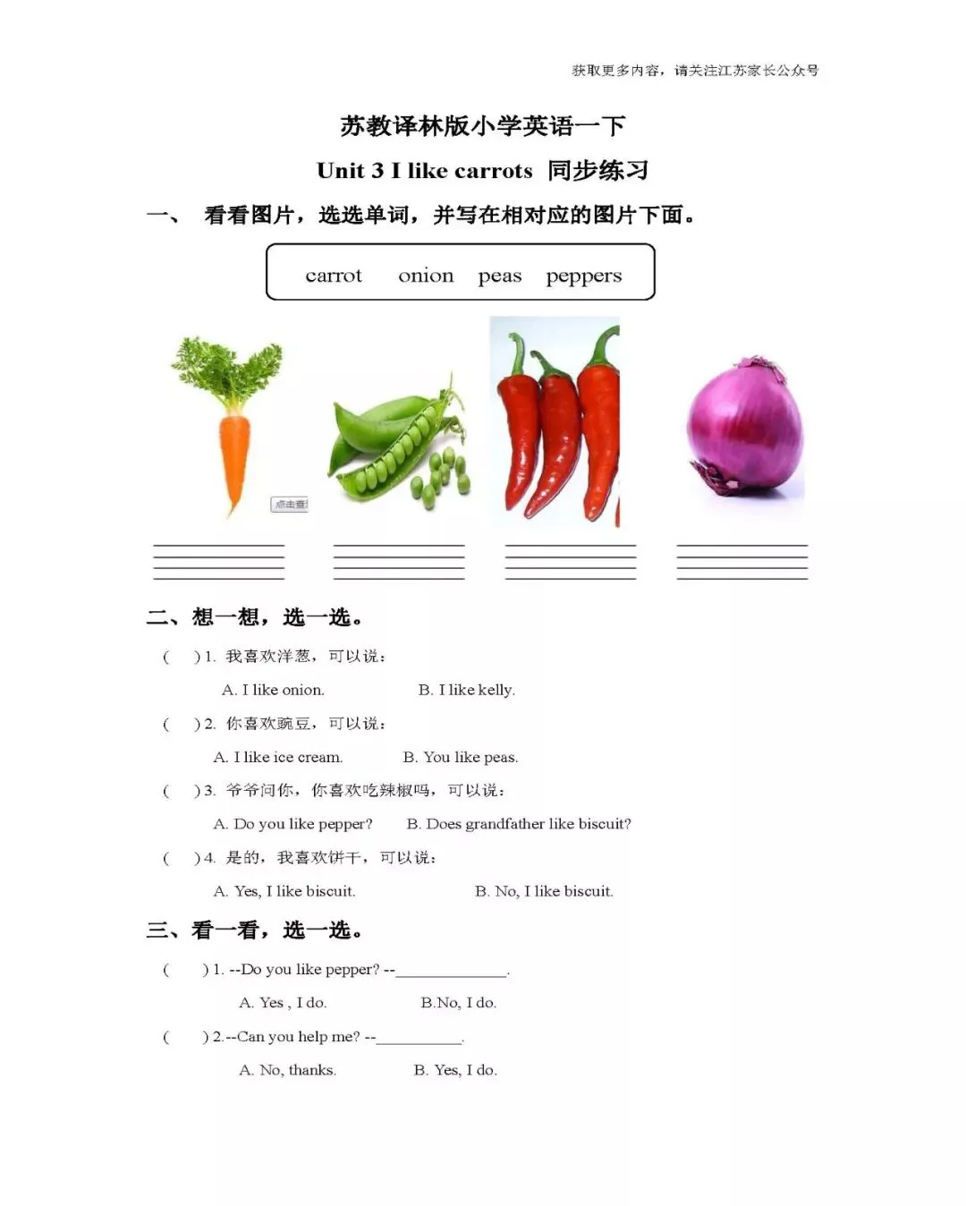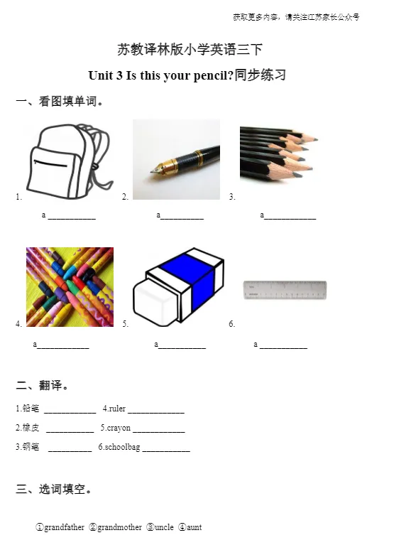 苏教译林版1-6年级下 Unit3同步练习(可下载):