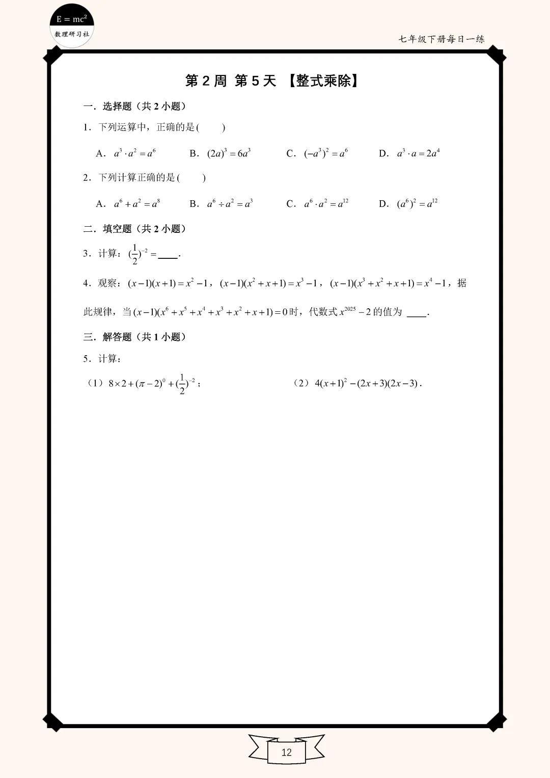 【七年级下】数学每日一练(2-5)免费领电子版 点击:加入数理研习社-资料库 题目部分 视频讲解 【往期资料汇总】七年级八年级九年级河南省中考真题 2026,一起加油 扫 码 加入学习交流群 点赞关注 小编会更努力的哦