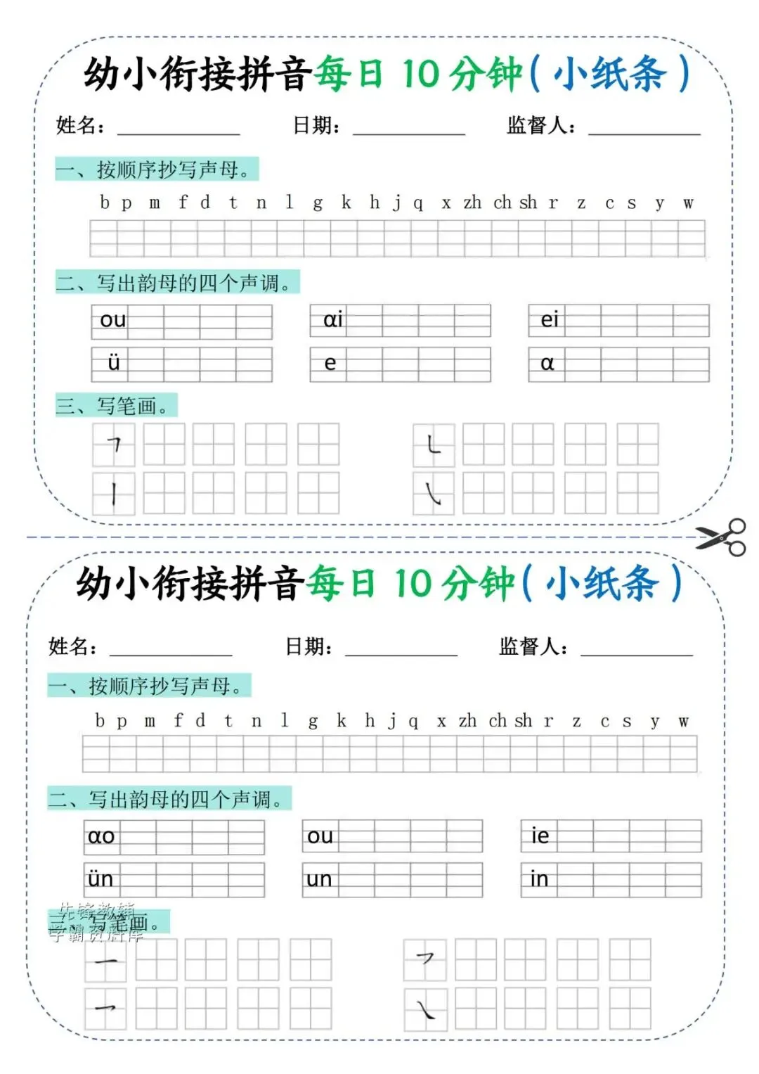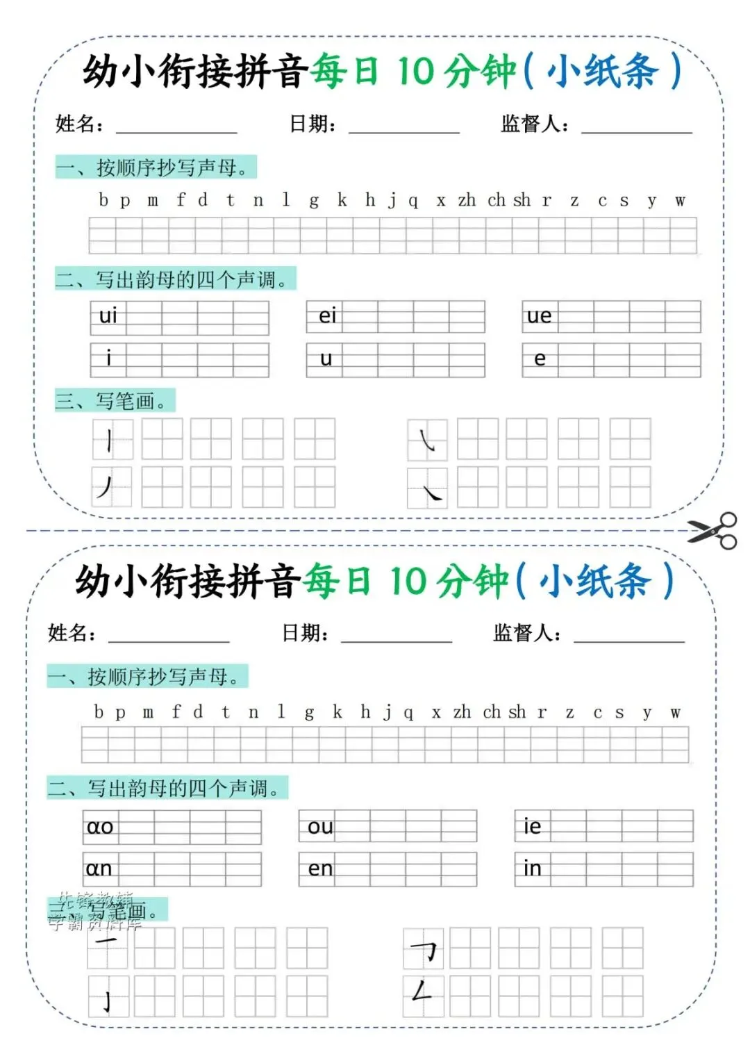 【幼小衔接拼音每日10分钟小纸条】电子版可打印,轻松搞定拼音关!