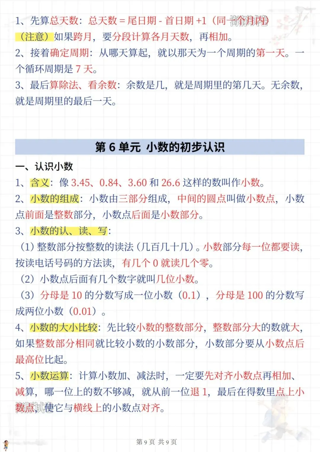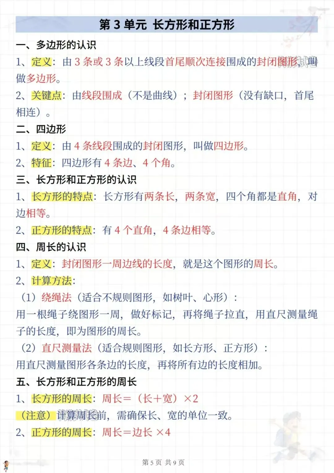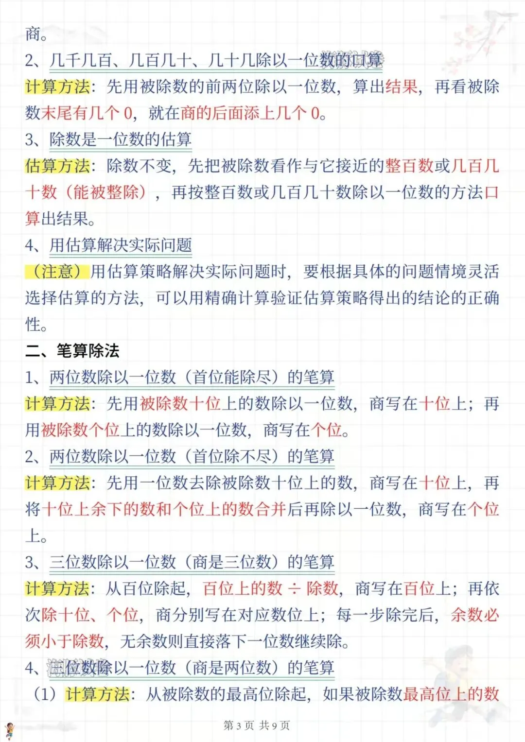 新版三年级下册数学《预习重点知识点汇总》电子版可打印