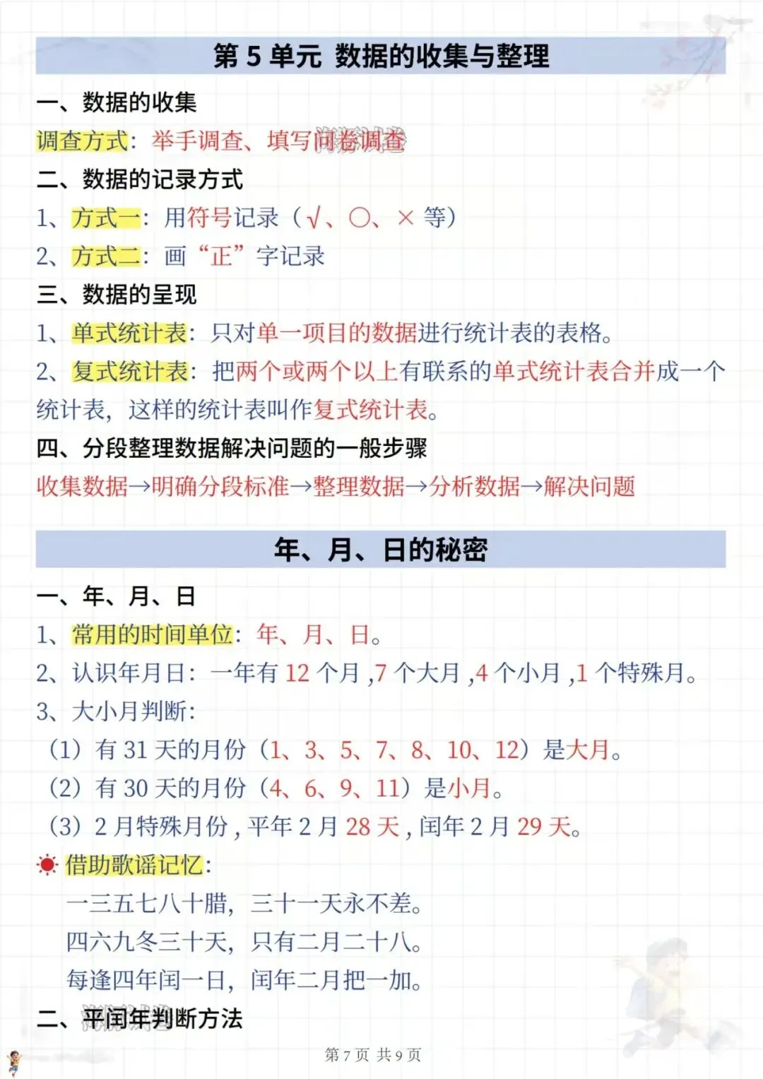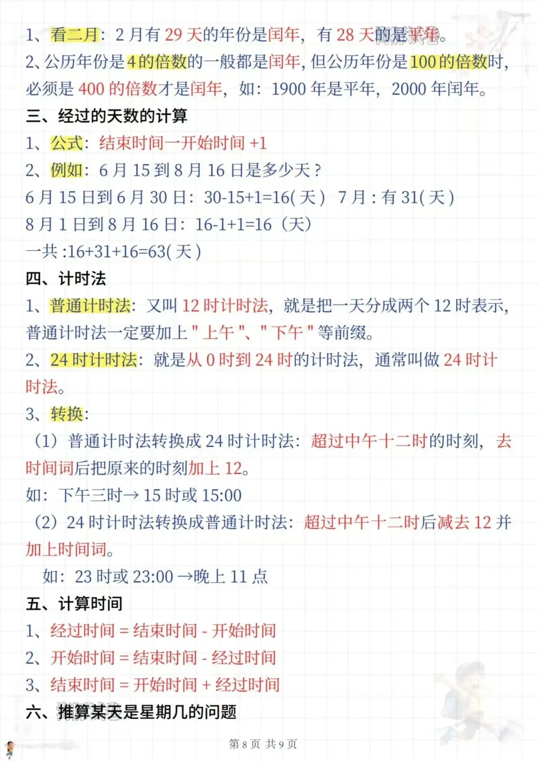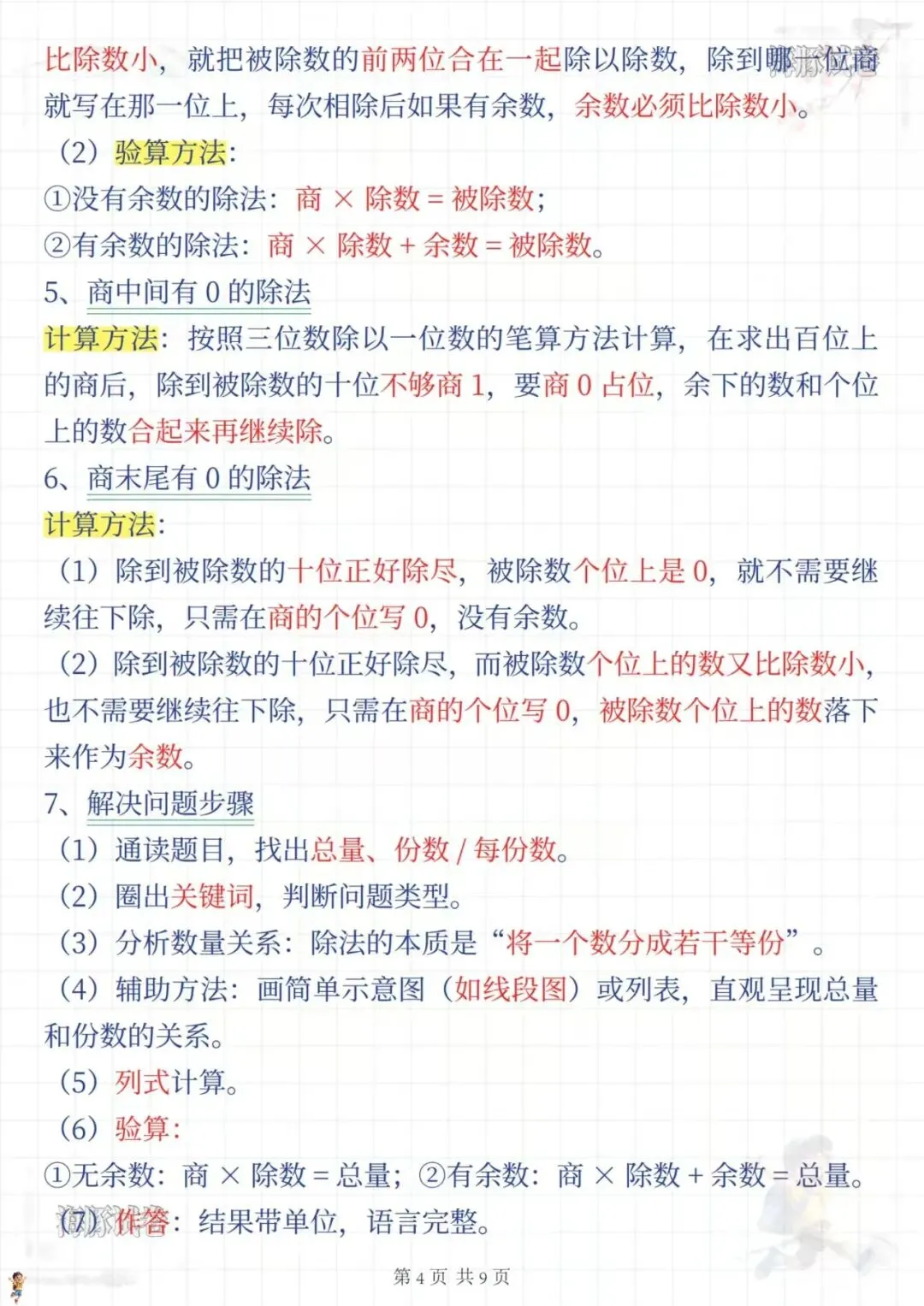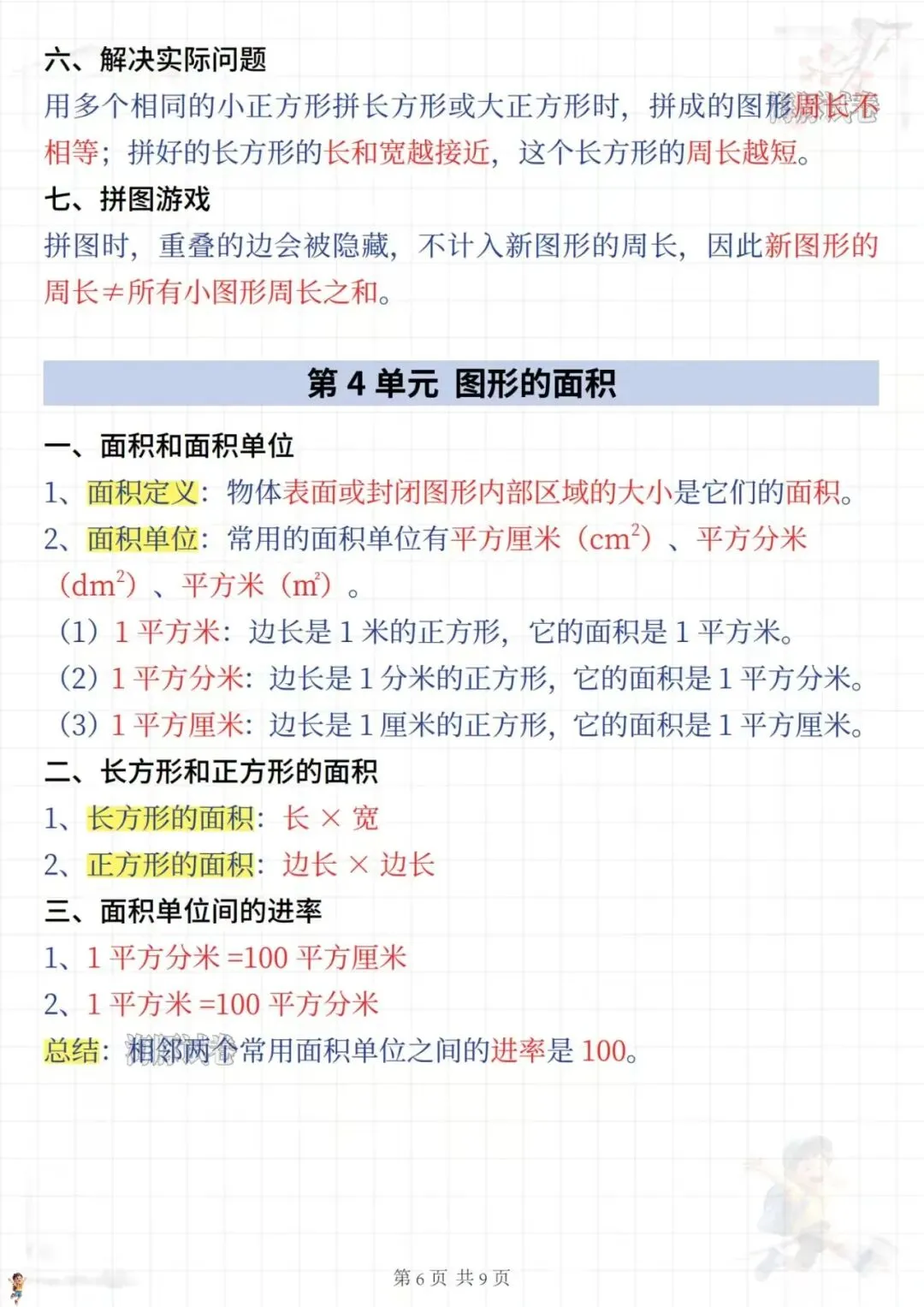 新版三年级下册数学《预习重点知识点汇总》电子版可打印
