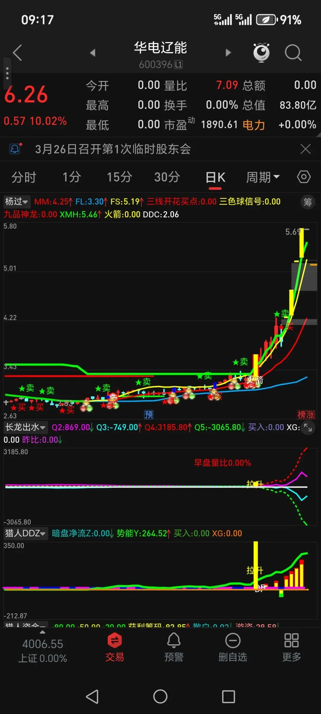 DRAWTEXT_FIX(ISLASTBAR,0.7,0.2,0,VARCAT(‘早盘量比’,VARCAT(VAR2STR(昨比,2),’%’))),COLORRED;