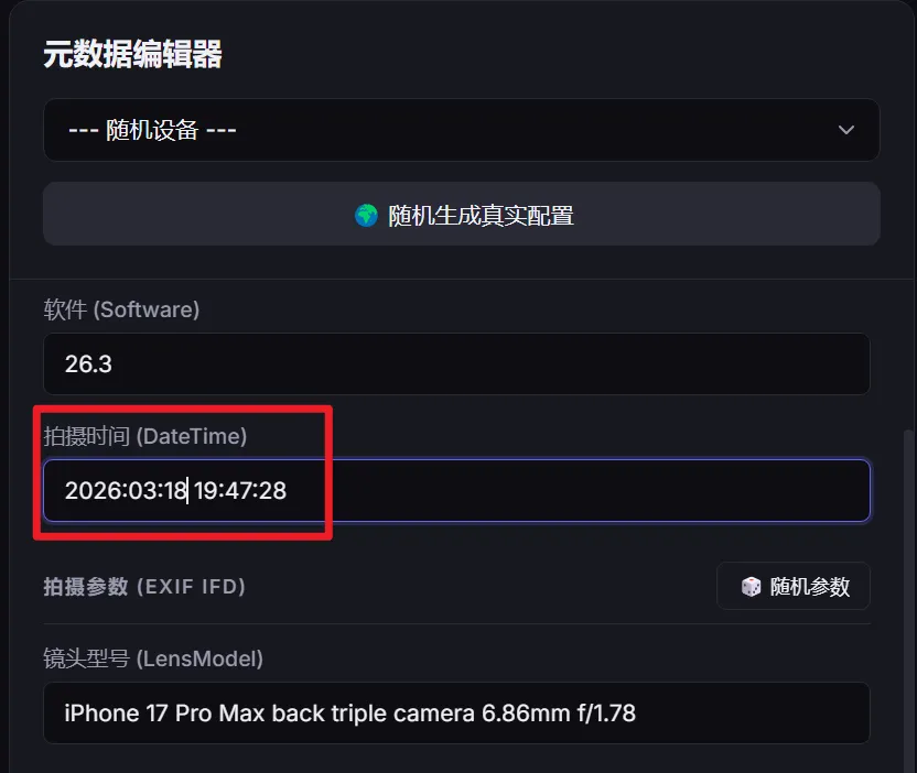照片EXIF元数据编辑器这个软件,比如可以修改照片的拍摄地、拍摄的设备等等。