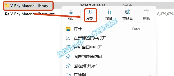 2.鼠标右键【V-Ray Material Library】文件夹选择【复制】