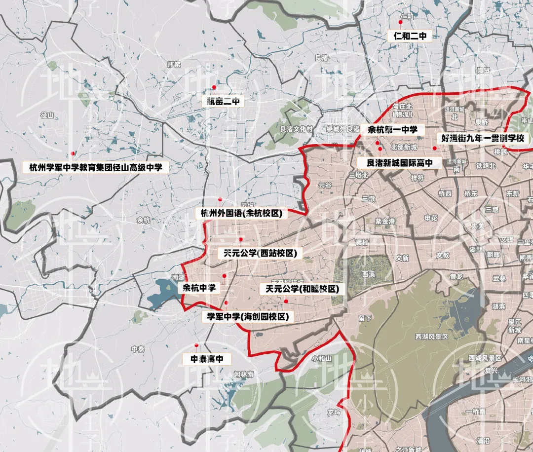 余杭则有学军、杭外两大省级头部教育集团的加持,有天元公学体系的全面铺开,有余杭中学改扩建、瓶窑二中、仁和二中、良渚新城好运路九年一贯制学校等遍地开花的基建投入。