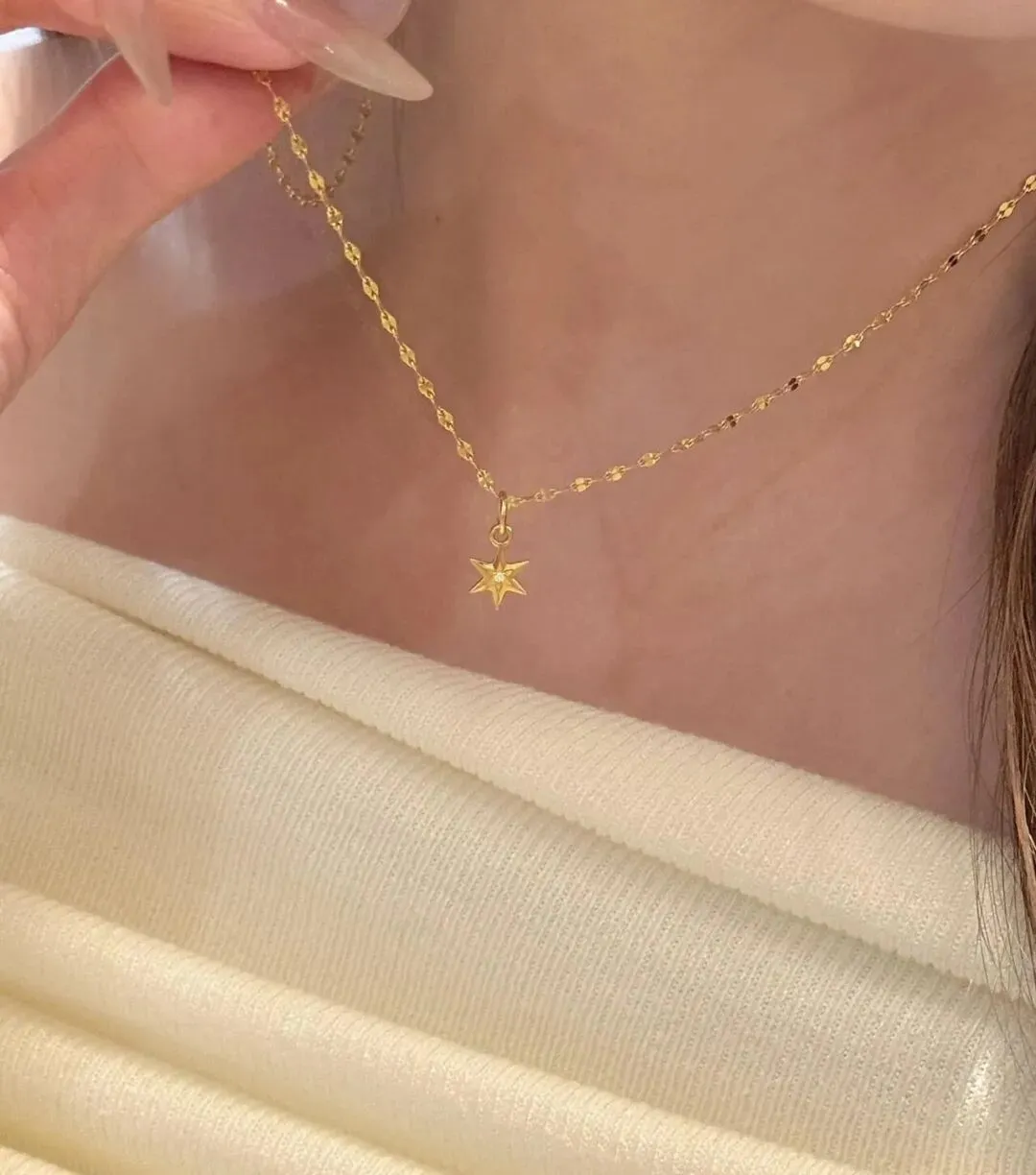 我自己最喜欢的是那个小星星的款式 特别精致 大概也就两克多 戴在脖子上不会很重 但又能看得出来是真金 那种温润的光泽感是仿金做不出来的 而且这种小克重的首饰 日常佩戴也不会心疼 不像那种大件 总怕磕着碰着的